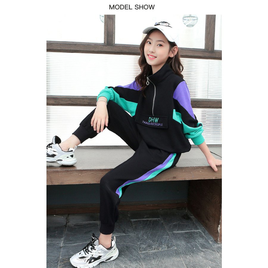 フロントのハーフジップと配色がデザインポイントで、女の子らしい印象を演出します。パーカーの袖口やスウェットパンツの足裾にスッキリとした伸縮性のあるリブ仕立ているので、着用時に引 きずる事が無く、スポーツや運動時のストレス軽減効果が期待出来ます。通園、通学、部活動、ダンスウェア、スポーツウェア、お泊りの時などに も◎クラブやチームでおそろいも◎!