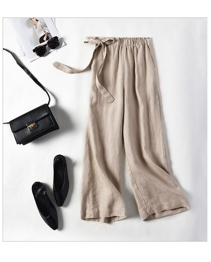 綿麻パンツ リネン混 9分丈 コットン