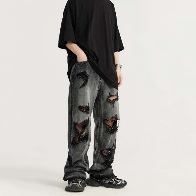 ビンテージ風 デニムパンツダメージ加工
