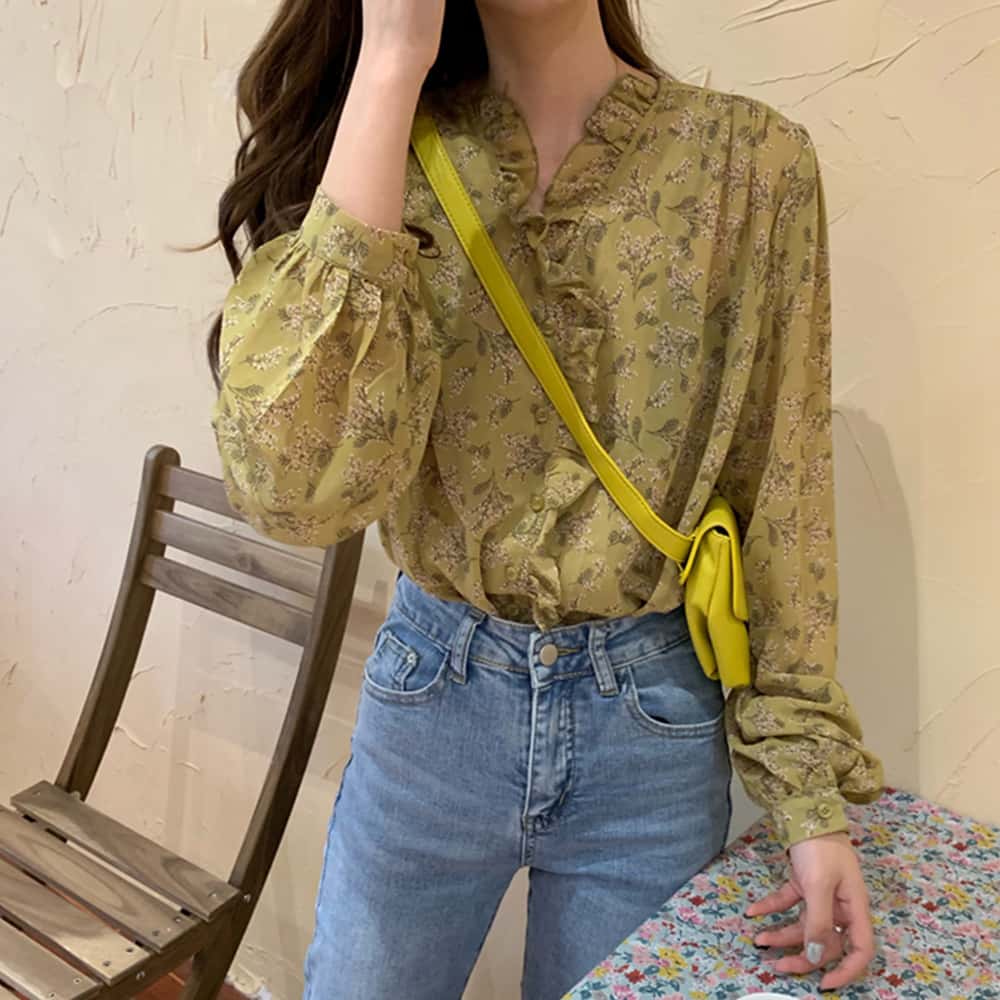 シフォンブラウス シアーブラウス ボリューム袖