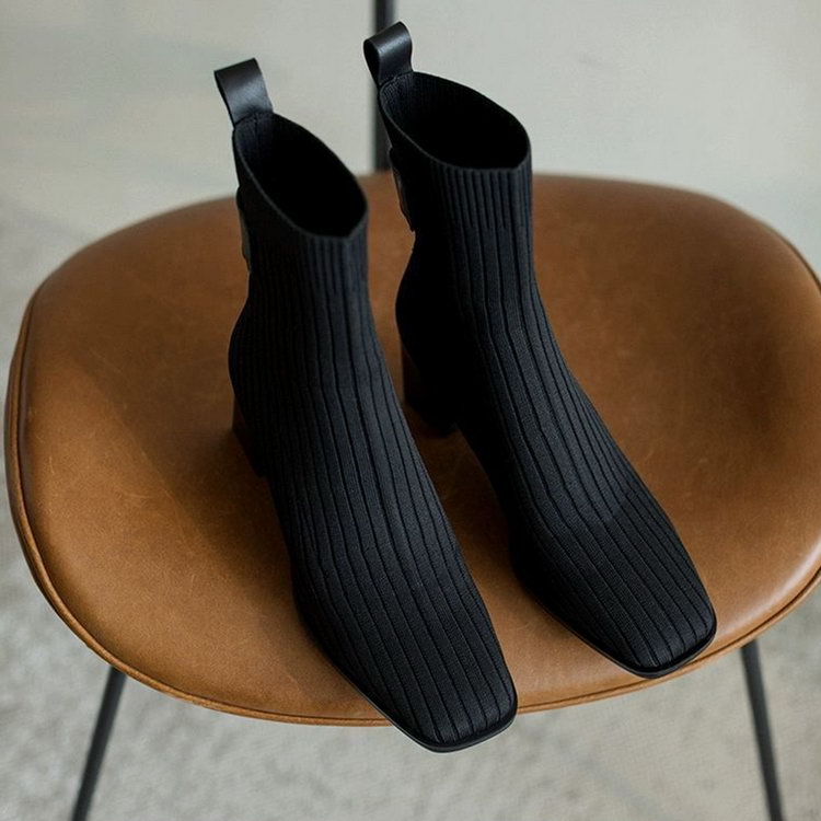ソックスブーツ リブ 秋冬 ブラック ハイヒール ショート丈 ファッション靴 韓