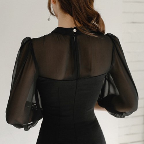 シフォンブラウス シアーブラウス ボリューム袖