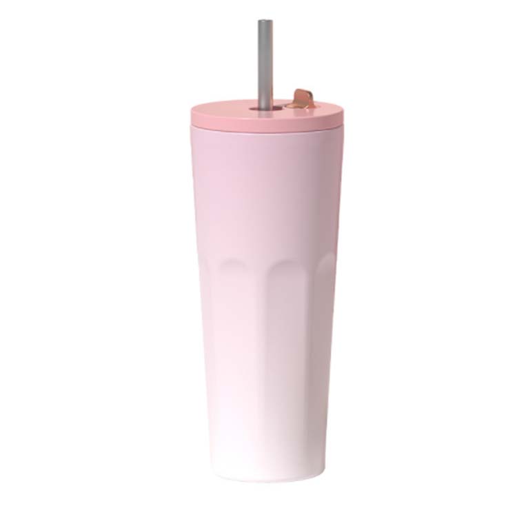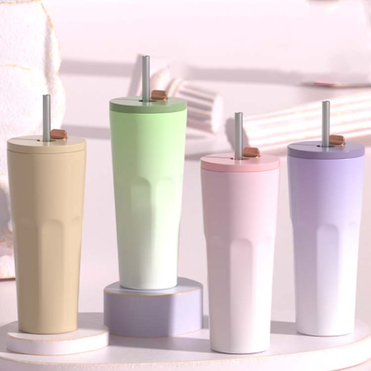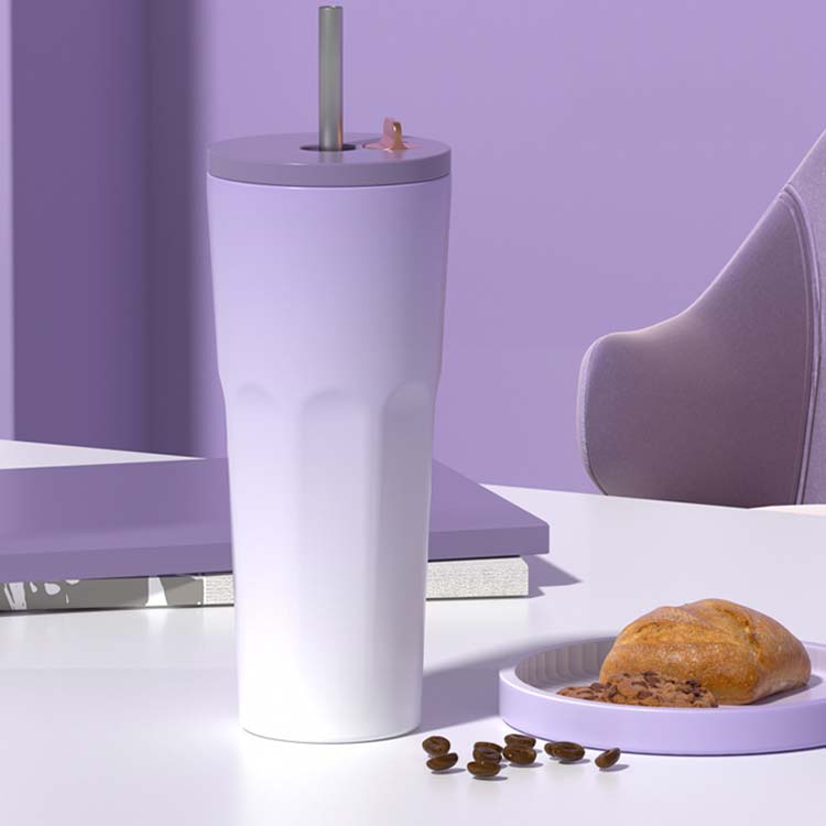 ストローをいちいち取り出す必要ない、便利な伸縮ストロー付きタンブラー。