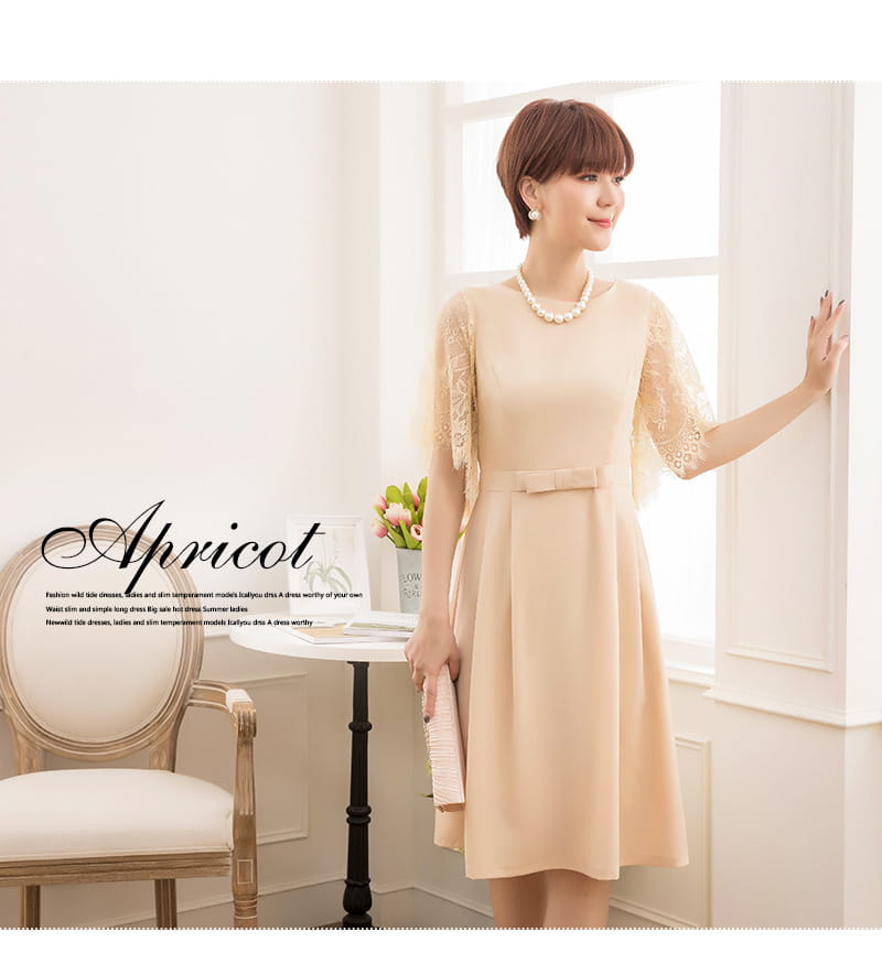 繊細なレースの袖が女性らしい揺れ感を生み出すフェミニンなAラインドレス
