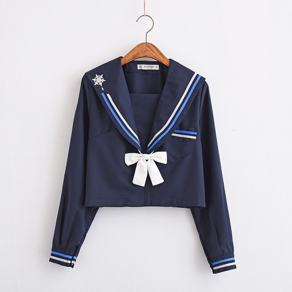 コスプレデパートオリジナルのセーラー服の特徴は、前にファスナーがある、 前開きの長袖セーラー服となります。