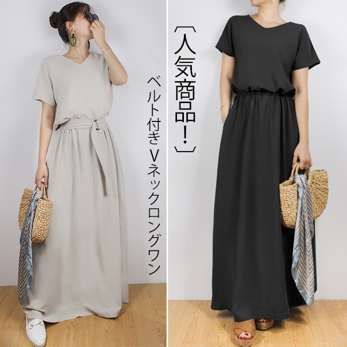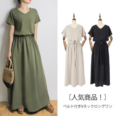 ロングワンピース 夏 半袖 コットンリ