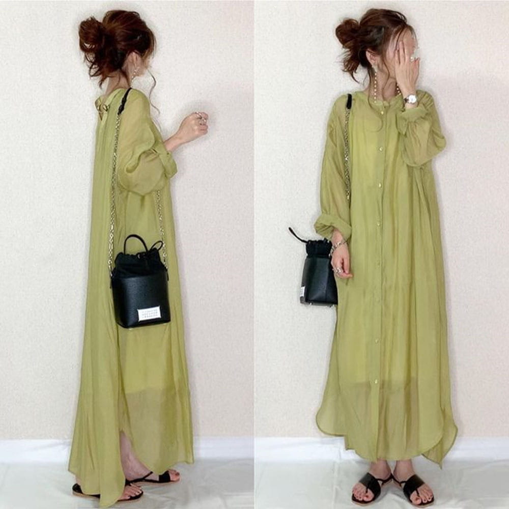 シャツ ワンピース 長袖 シャツワンピース ロング