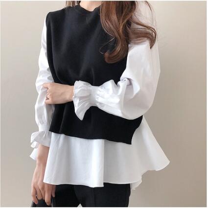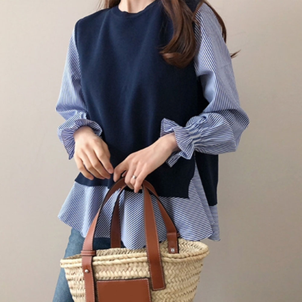 シアースリーブ ドッキングシャツ ボウタイシャツブラウス