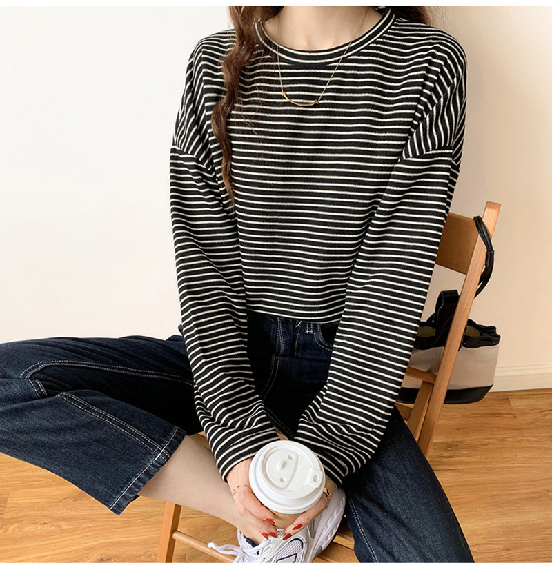 【トレンド感のあるボーダーデザインがシーズンムードを高めてくれます】体型カバー トップス! ドロップショルダーデザインで華奢見え効果が期待できます。オーバーサイズでも,すっきりとした印象も与えてくれます。アウトスタイルで着用すれば、気になる腰回りを綺麗に。メイントップスとしてはもちろんインナー使いもおすすめ。春秋にぴったりな着回し力抜群のアイテムです。