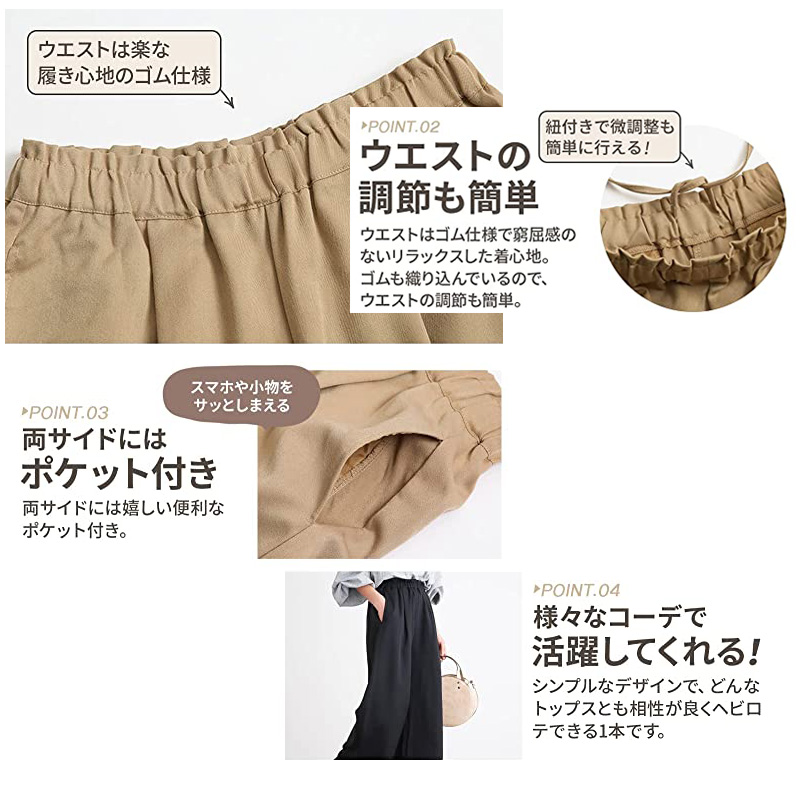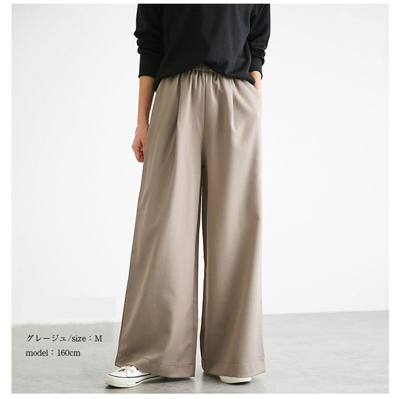 ワイドパンツ レディース 無地 きれい