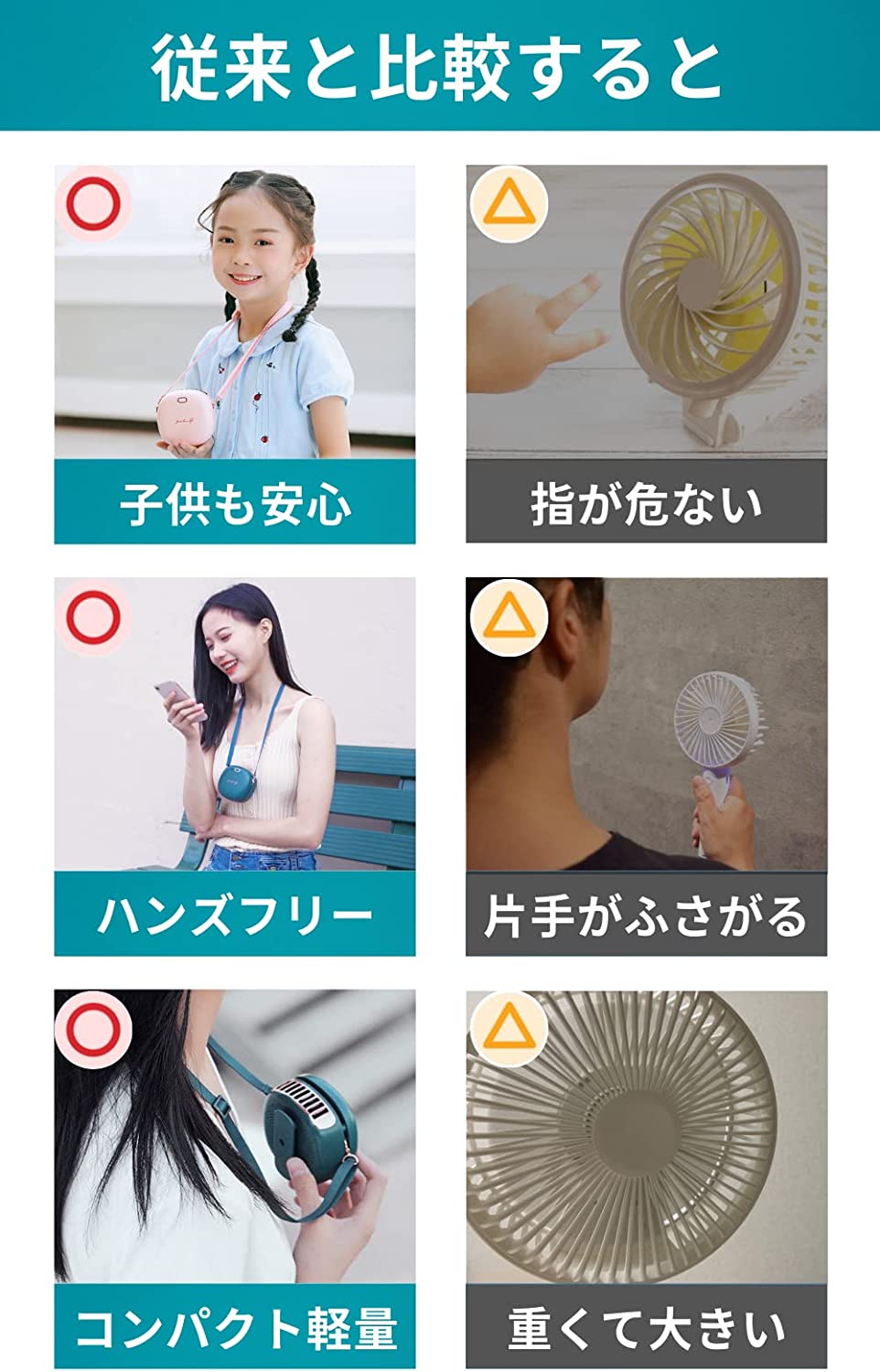 春夏用 携帯扇風機 首掛け扇風機