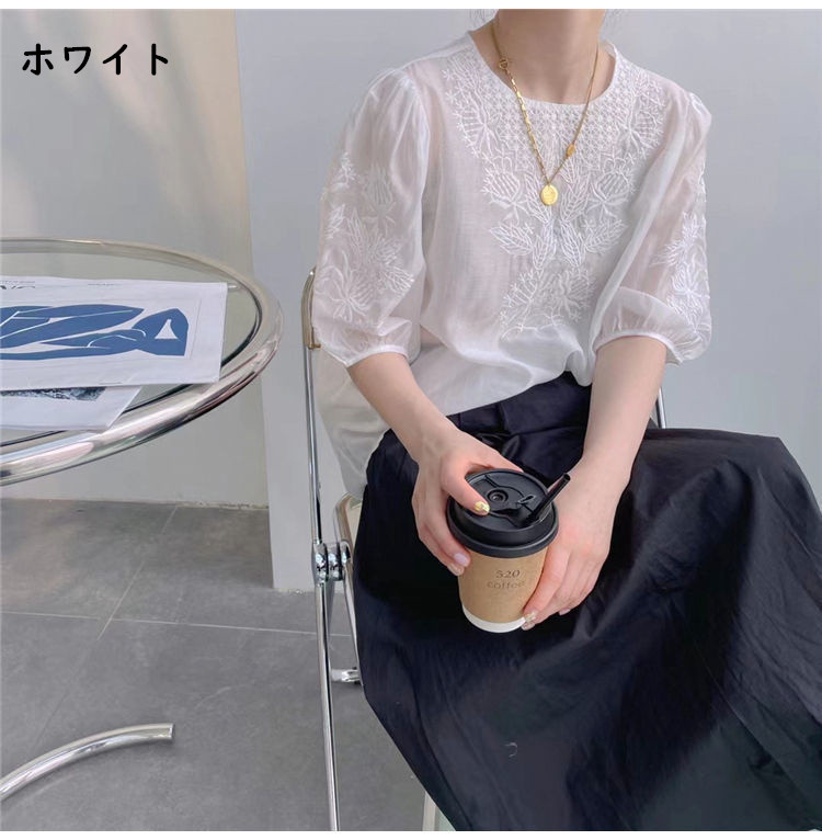 ブラウス 柔らかく涼しいレースブラウス