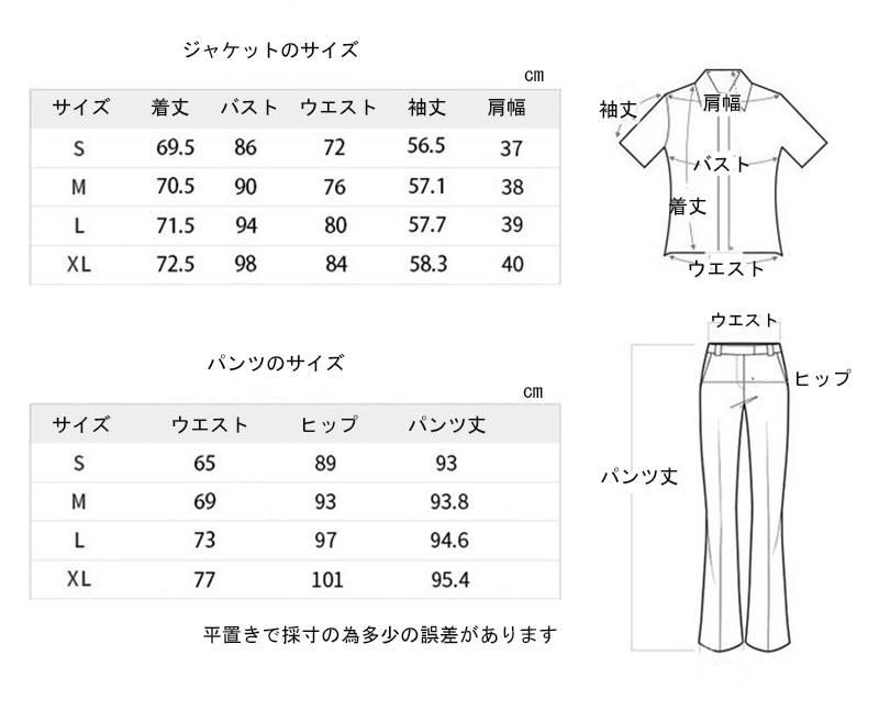 表記しているサイズは平置きで採寸ですので若干の誤差が生じる場合がございます色 ブラック、ブルー、ピンク、ベージェ、グレー商品内容 【ジャケット+パンツ 】(他の商品に含まれません)