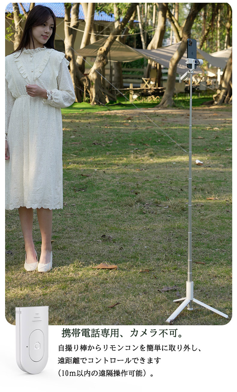 マホ三脚 自撮り棒 セルカ棒 じどりぼう 遠隔リモコン 三脚 150cm以上 コンパクト 軽量 安定 ロング Bluetoothリモコン シャッターボタン付きで最大10m操作範囲