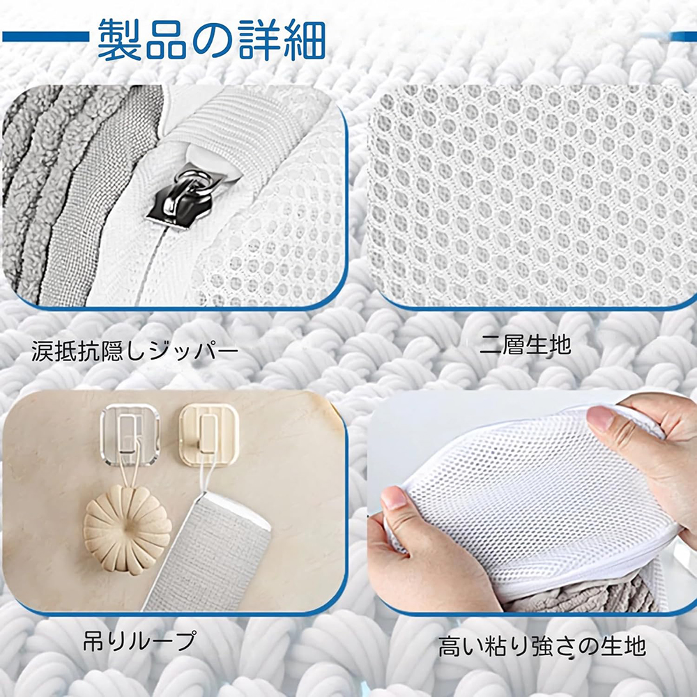 初めてご使用になる際には毛が抜ける場合がございます。 直接使用しても問題ありませんが、洗濯ネットを裏返して洗うだけで問題は解決します。