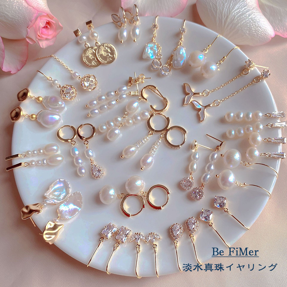 本真珠イヤリング ジルコンイヤリング
