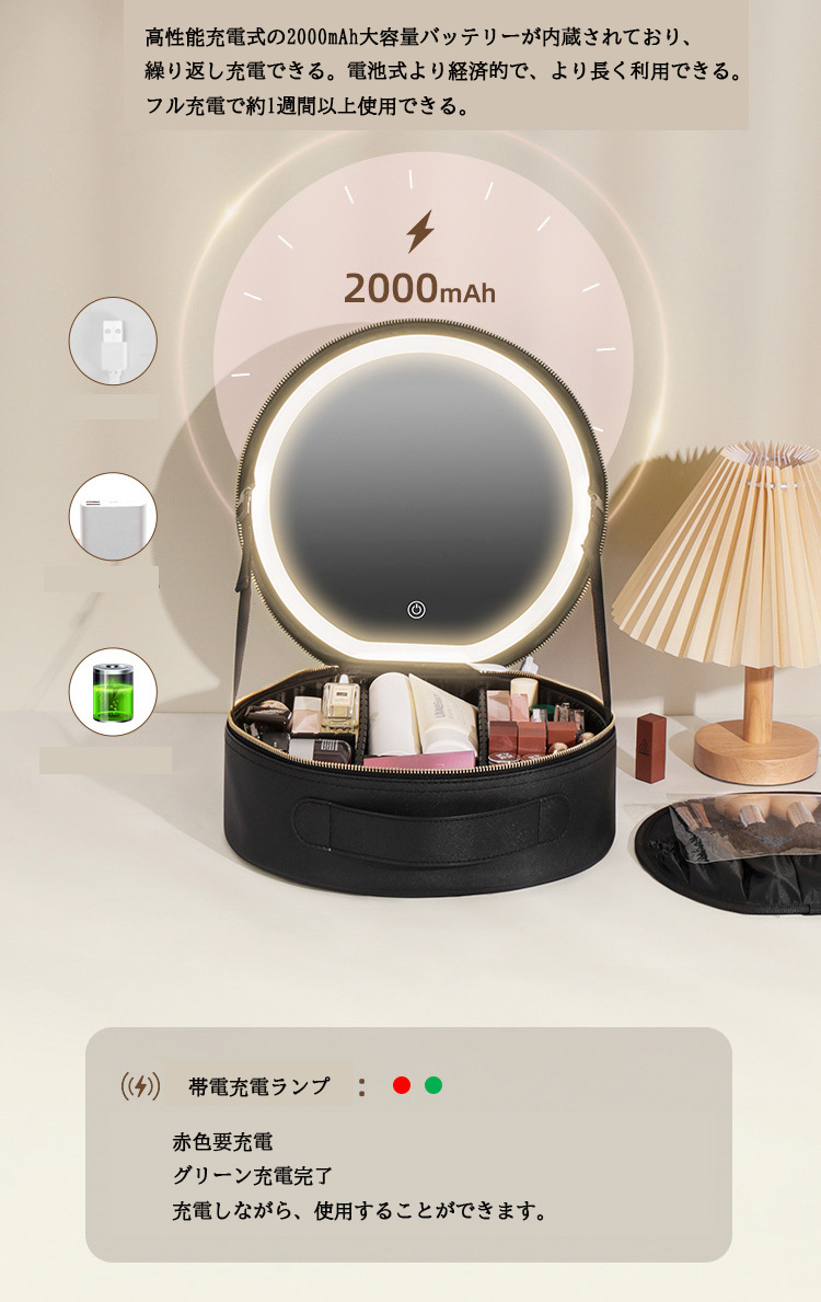 女優ミラー 寒暖色調節 鏡付きメイクボ