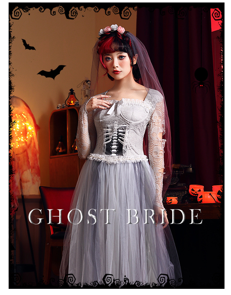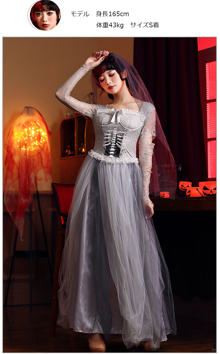 ハロウィン コスプレ 仮装 パンプキン ハロウィン ゾンビ 花嫁 レース ドレス ハロウィン 出し物 妖怪 萌え袖 キョンシーガール 妖怪 萌え袖