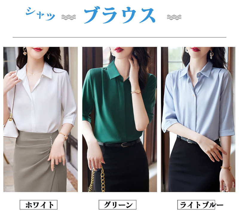 薄手のさらっとした生地感ブラウスで、キャミソールやベアトップなどのインナーやジャケット、カーディガンなどの羽織りと合わせることで、春、夏、秋と長い季節にお使い頂けます。どんなお洋服にも合わせやすいシンプルなデザインなので、20代、30代、40代、50代、60代と幅広い年代の方に長く使って頂けるアイテムとなります。適度なとろみ感で柔らかな印象を与えてくれます。オフィススタイルはもちろん、入学式や卒業式、授業参観などの行事や、食事会やカジュアルなパーティー、デートやお出かけなど様々なシーンで活躍のアイテムとなります。