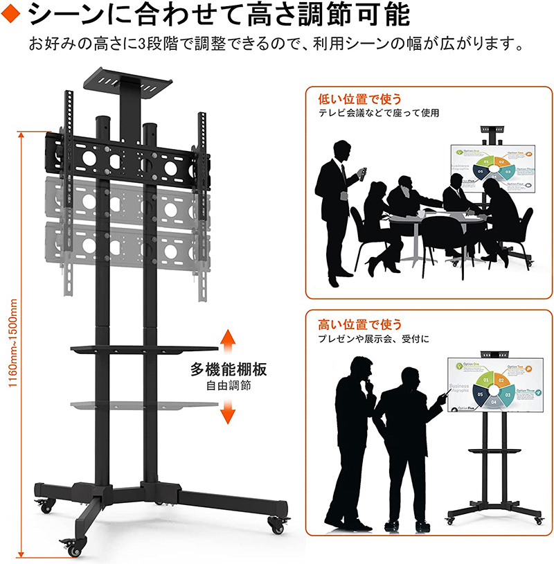 角度調節 設置したまま画面の向きと高さ