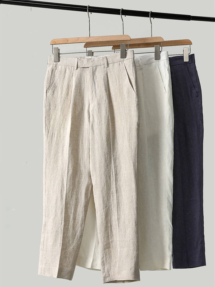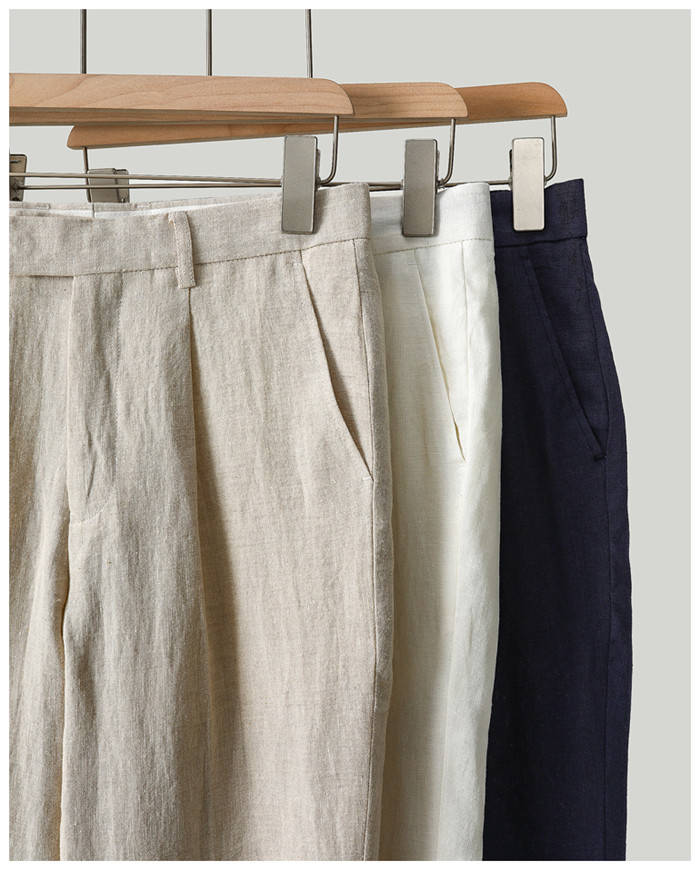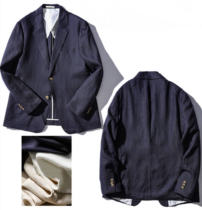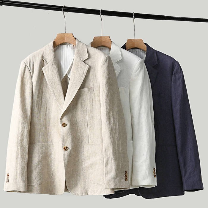 接触冷感 亜麻100% スーツ 上下セット テーラードジャケット スラックス 春夏品 男性用 無地 通気性 3colors 白色