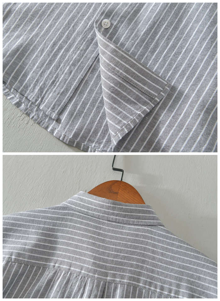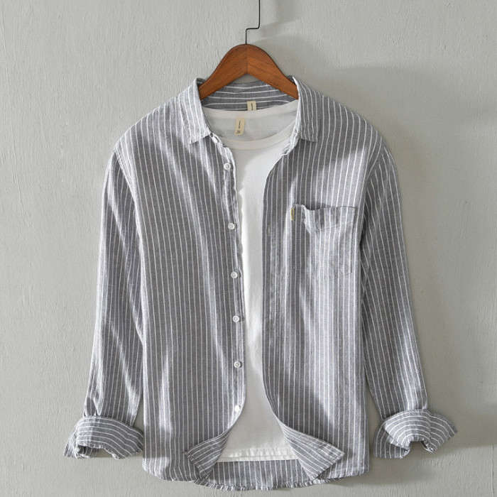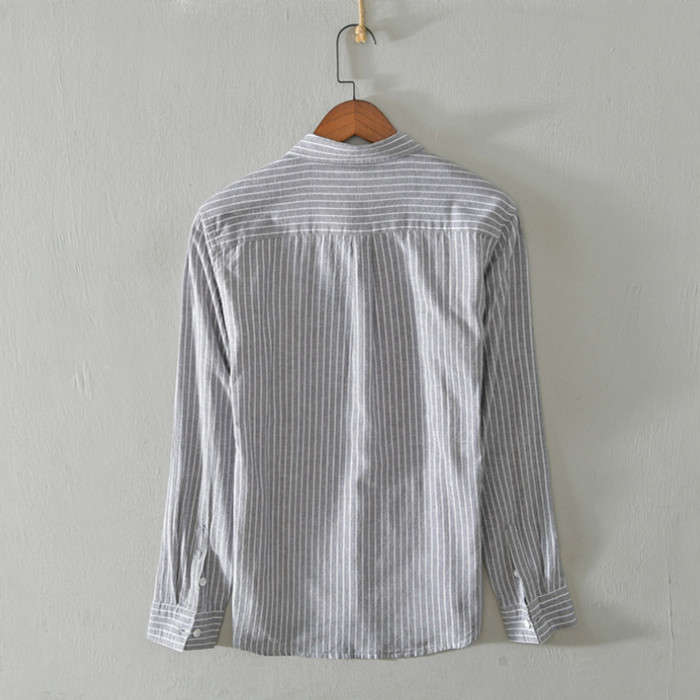 綿麻 ストライプ柄 長袖シャツ カジュ