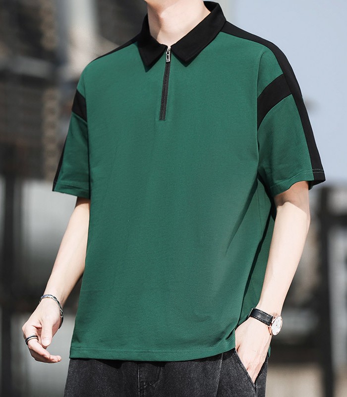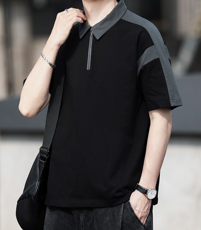 半袖ポロシャツ ハーフファスナー ジャージポロシャツ 夏物 通気 涼しい トップス 黒色 白色 4色