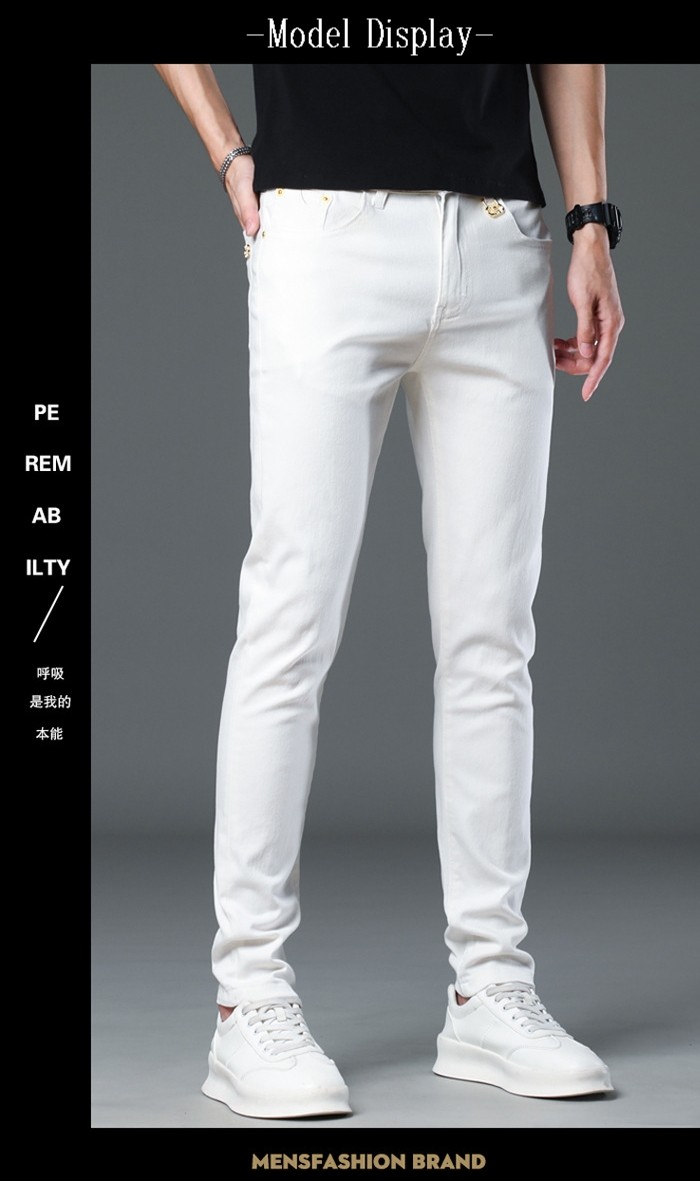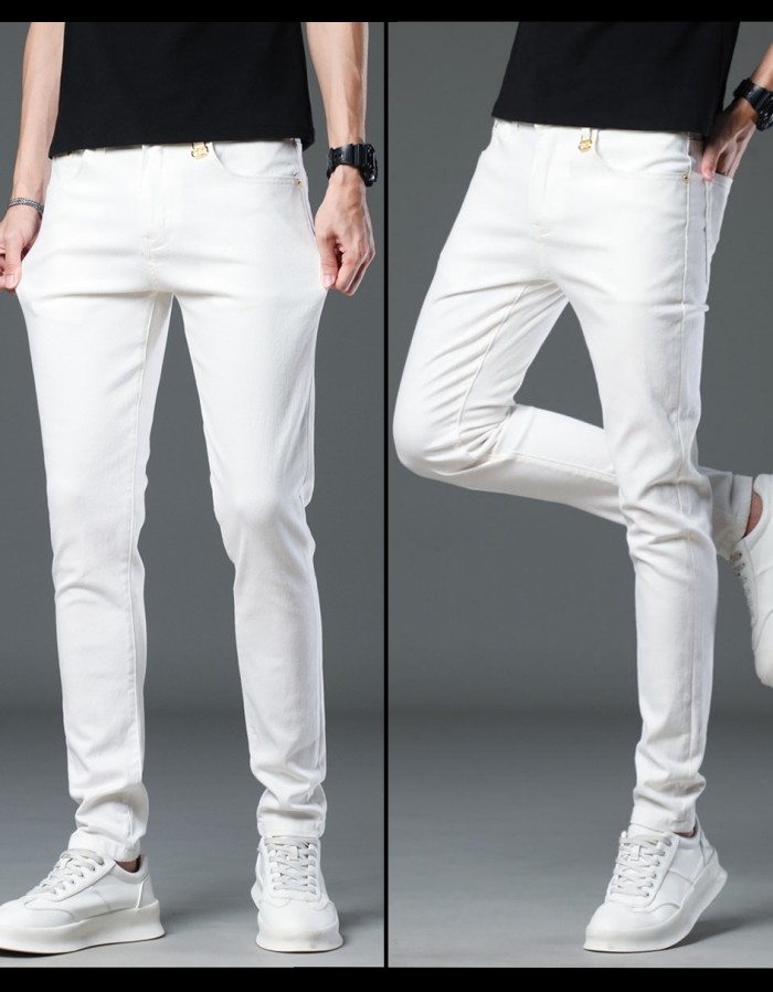春 夏 秋 新作 美脚 ジーンズ 伸縮性 デニムパンツ 男性用 ロングパンツ 裾上げ済み 普段着 2colors 黒色 白色