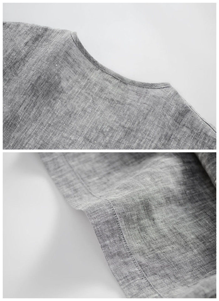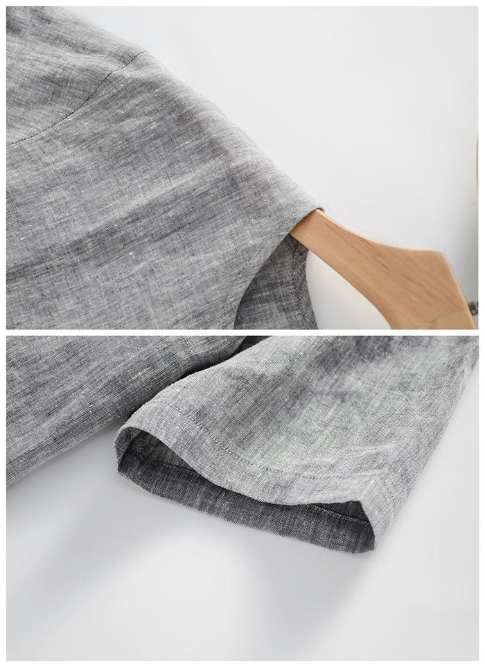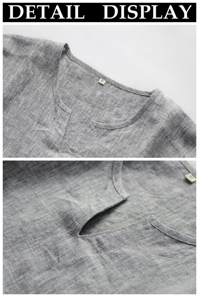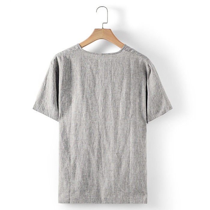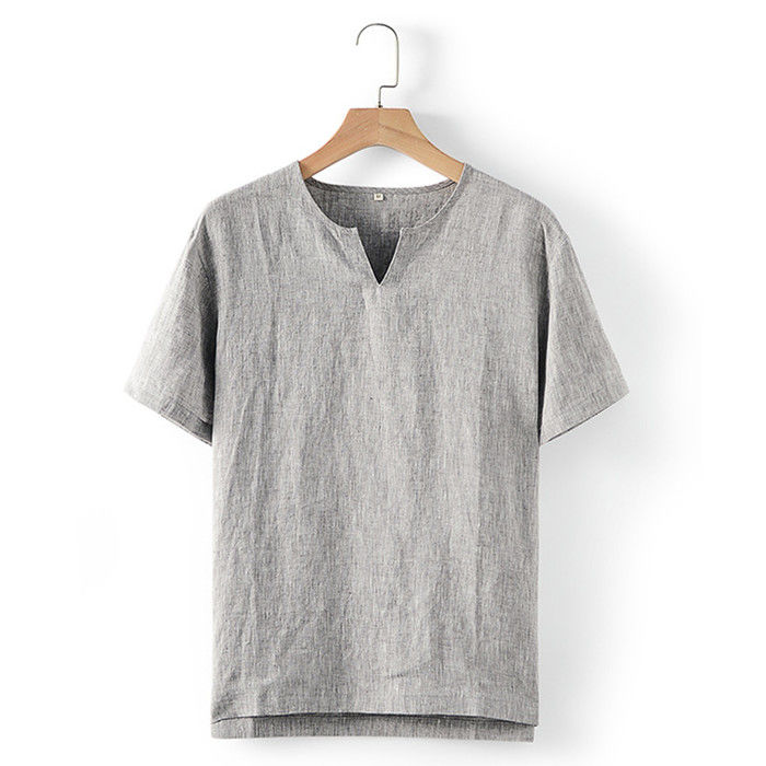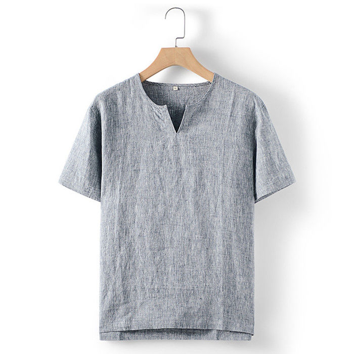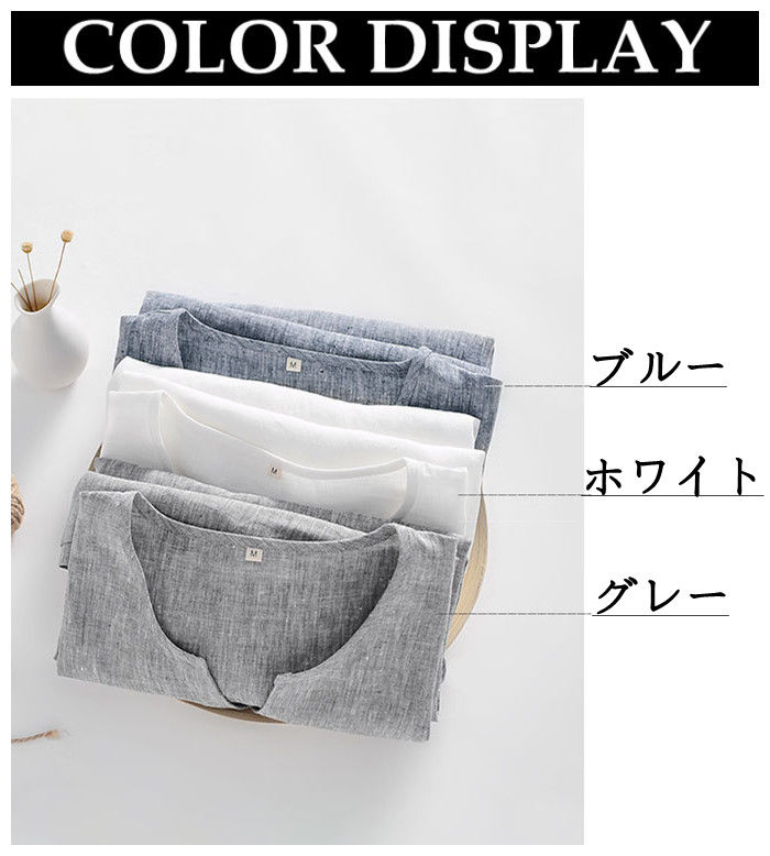 綿麻 半袖Tシャツ Vネック カジュア
