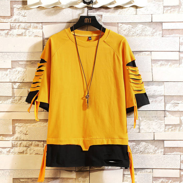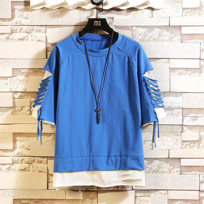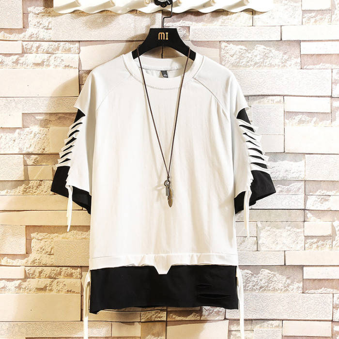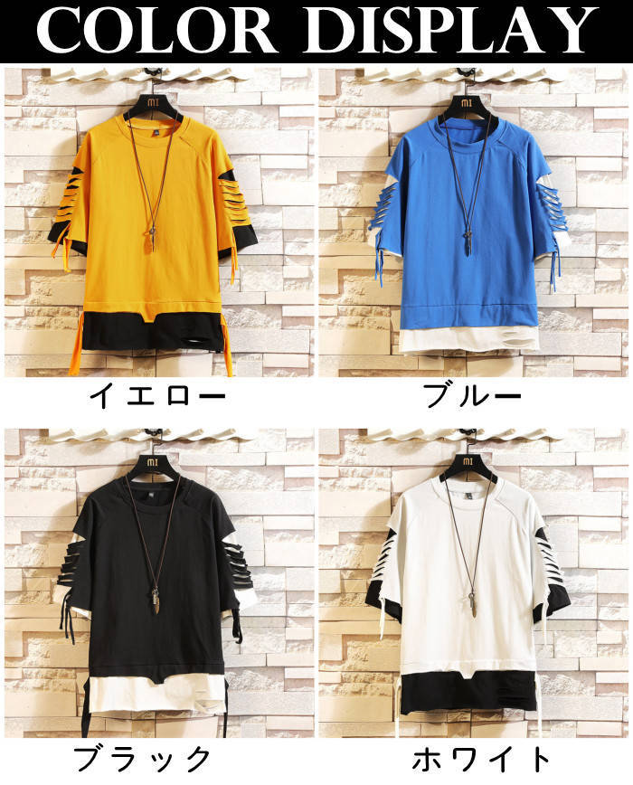 Tシャツ 半袖 Tシャツ メンズ ヒップホップ風 コットン T-shirt 丸首 カジュアルTシャツ ダメージ加工 Uネック トップス 夏物 カットソー
