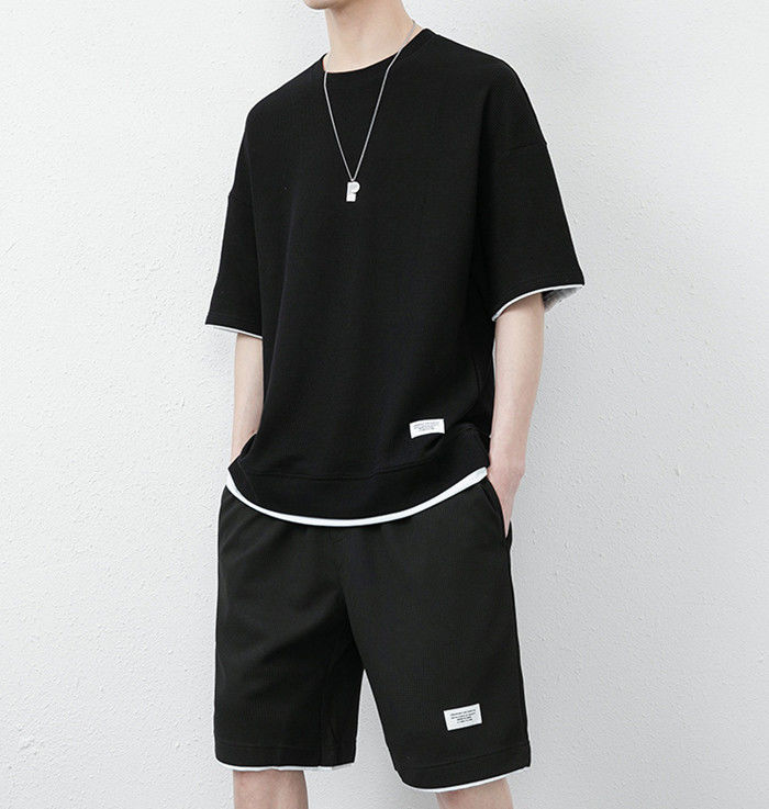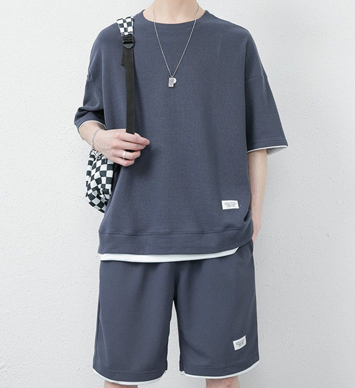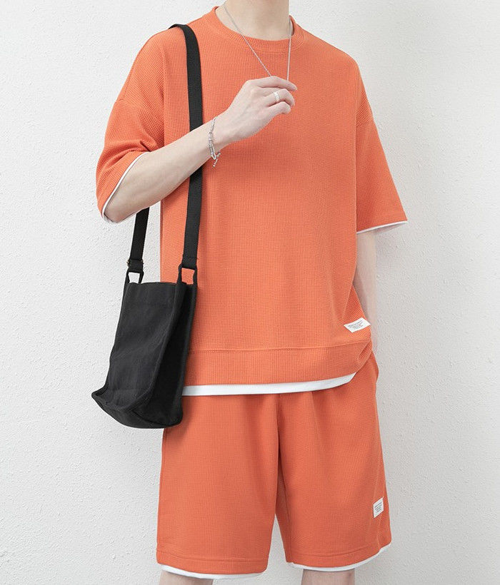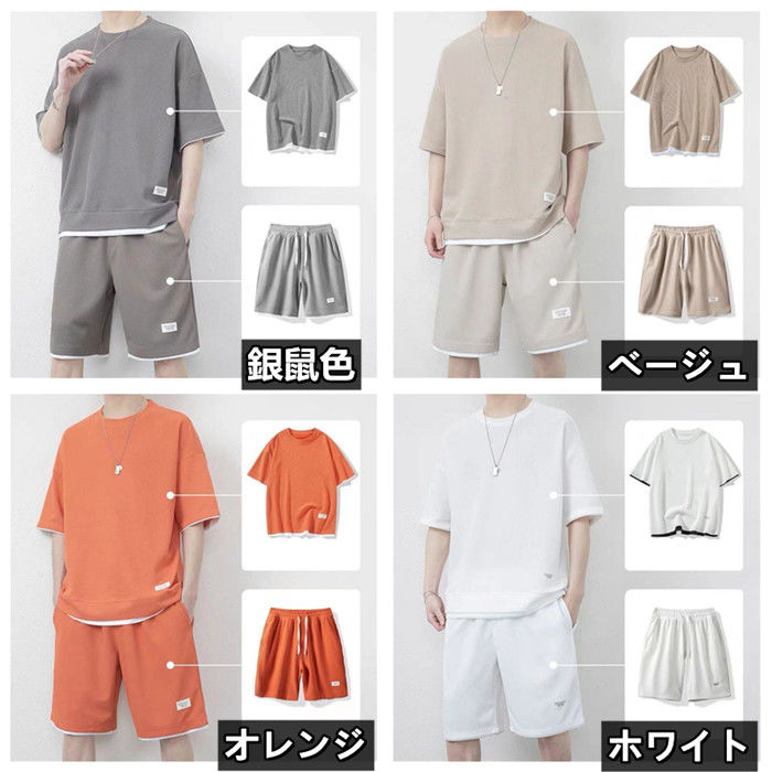 サマーセット 2点上下セット ワッフルTシャツ ランニングウェア ハーフパンツ 男性 夏物 8色 灰 白 黒