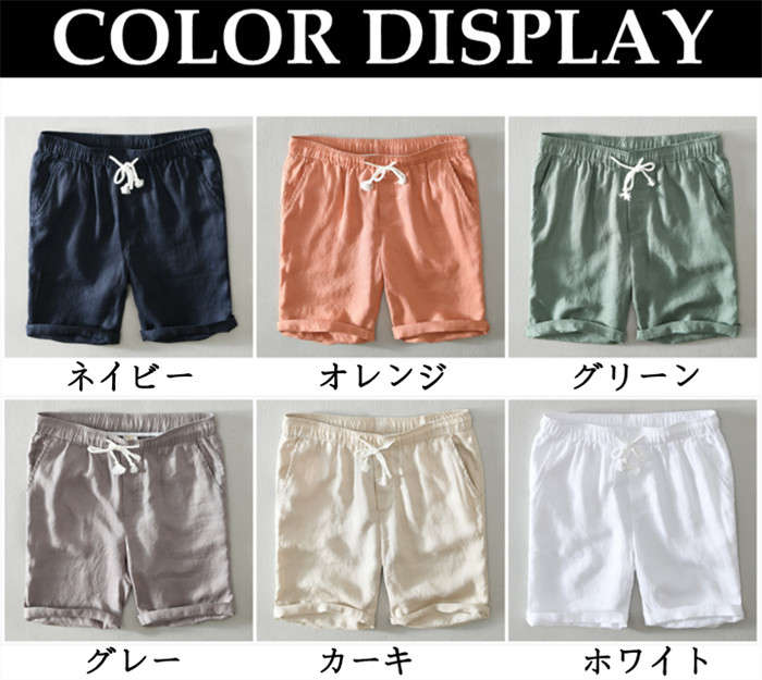 麻100% 男性用 リネンパンツ ショ