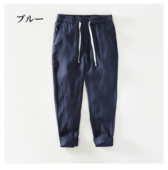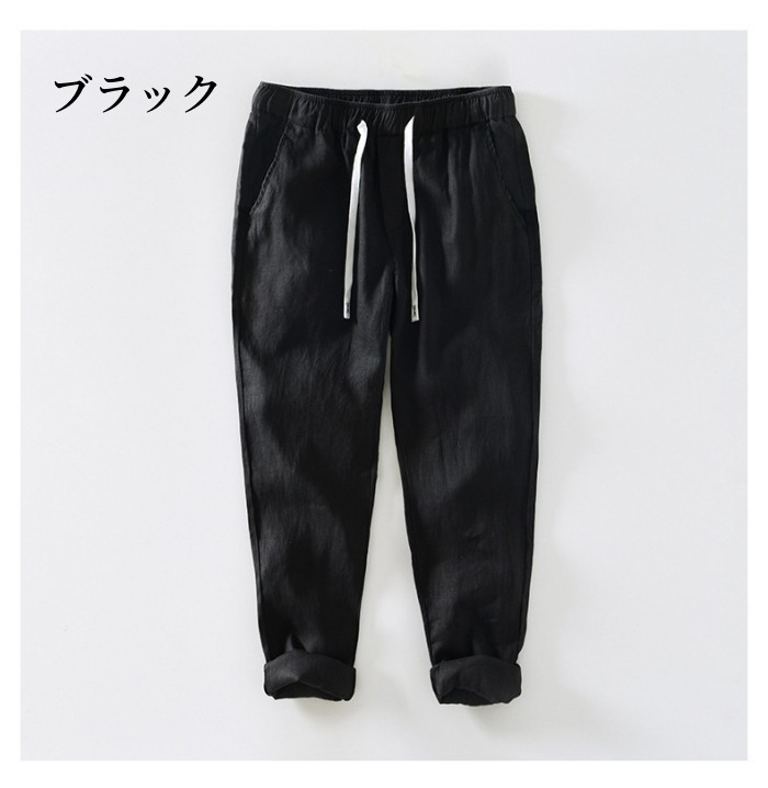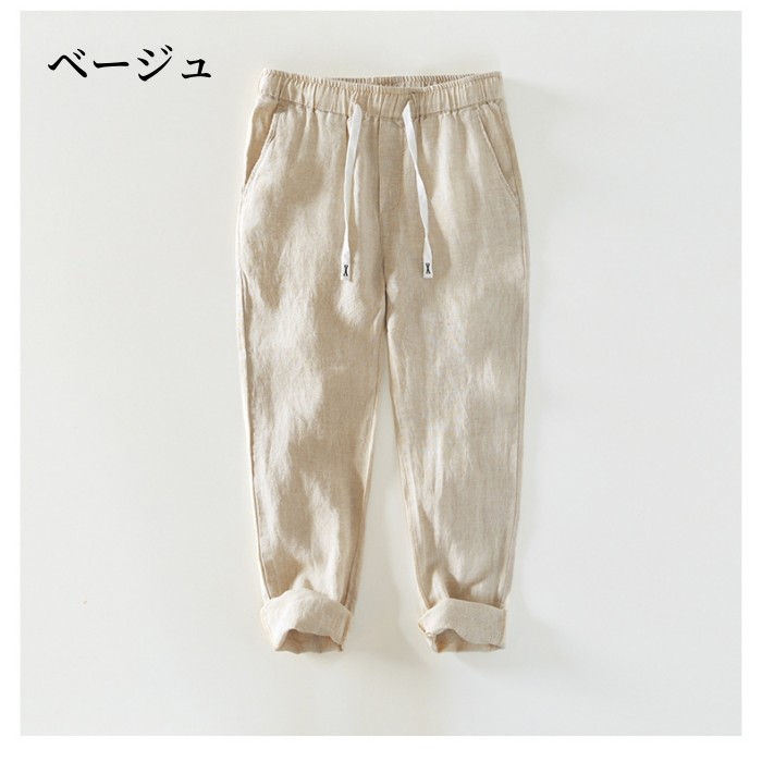 リネンパンツ ウエストゴム 通気性 快