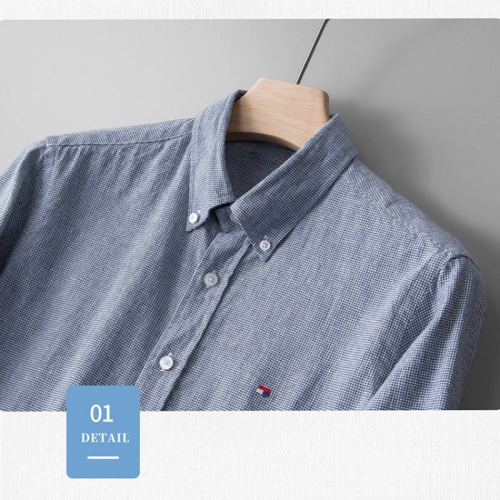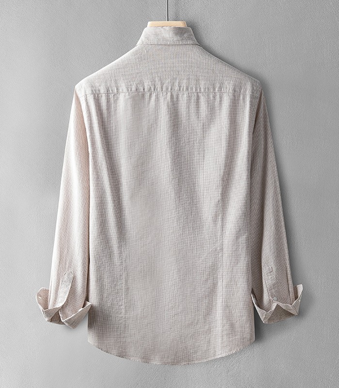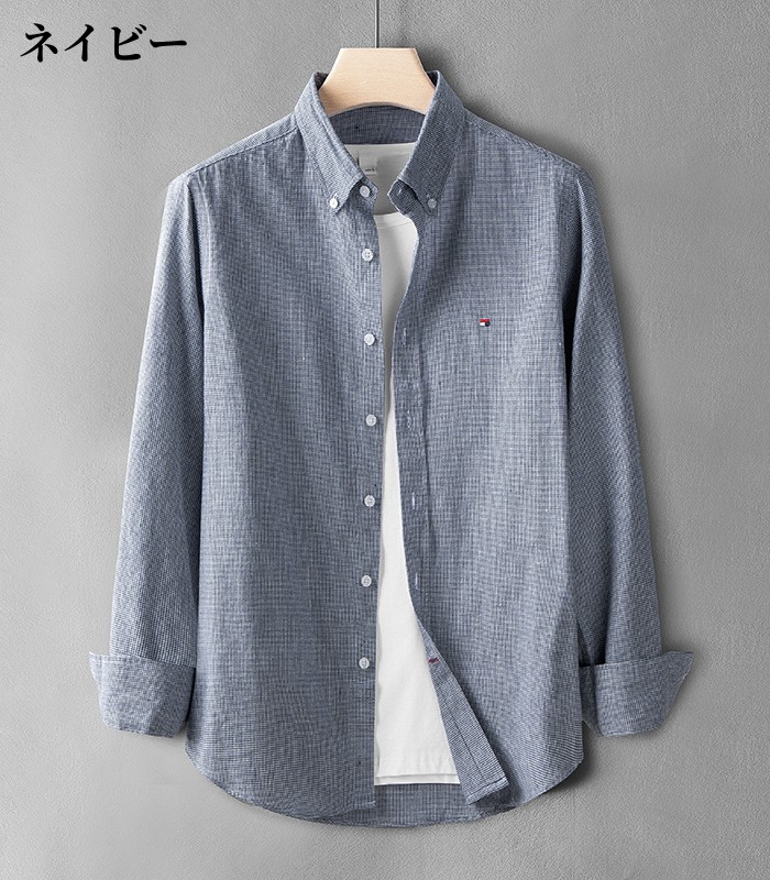 綿麻素材 ボタンダウン 長袖 リネンシ