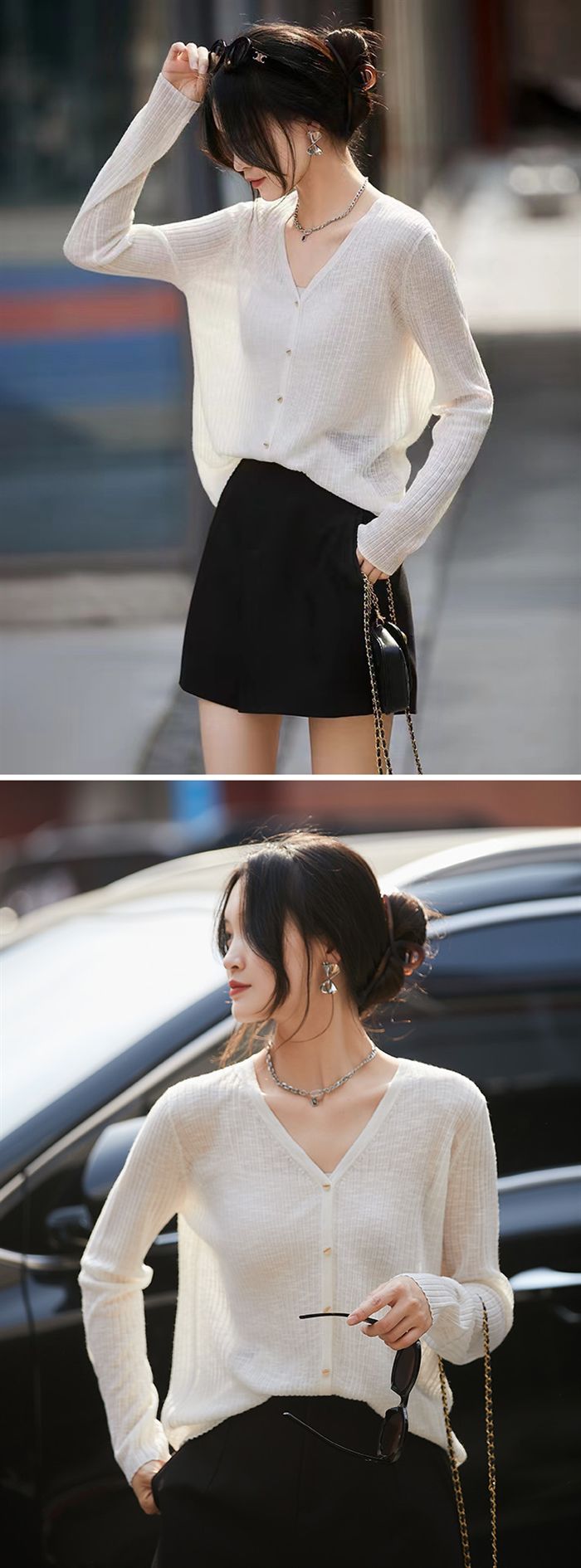 シアースリーブ ドッキングシャツ ボウタイシャツブラウス