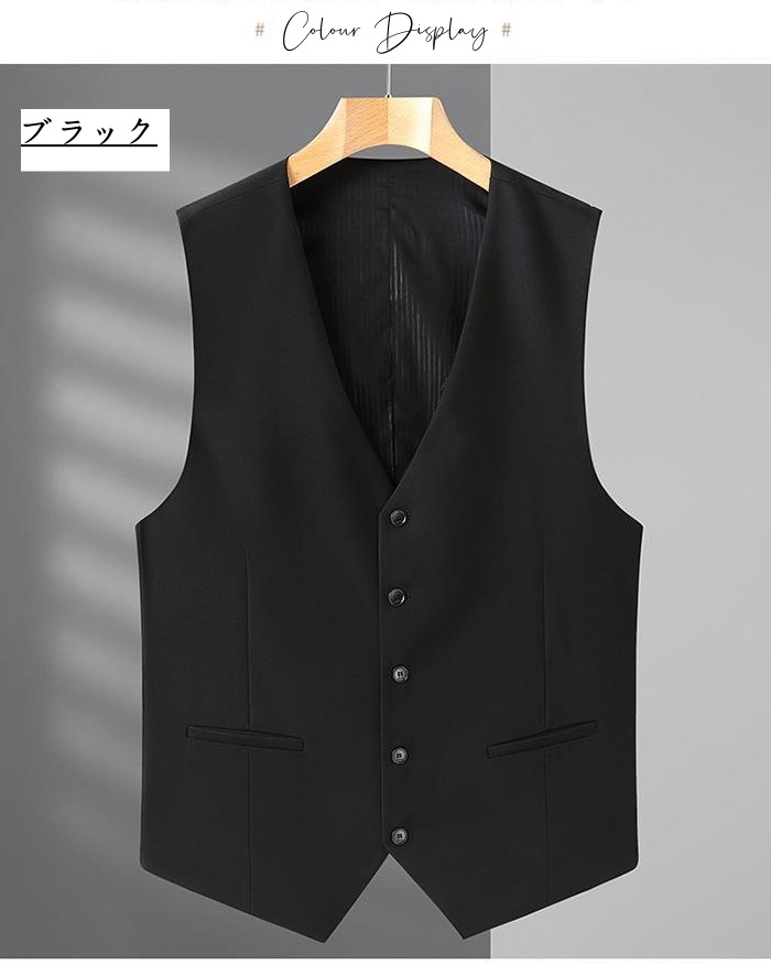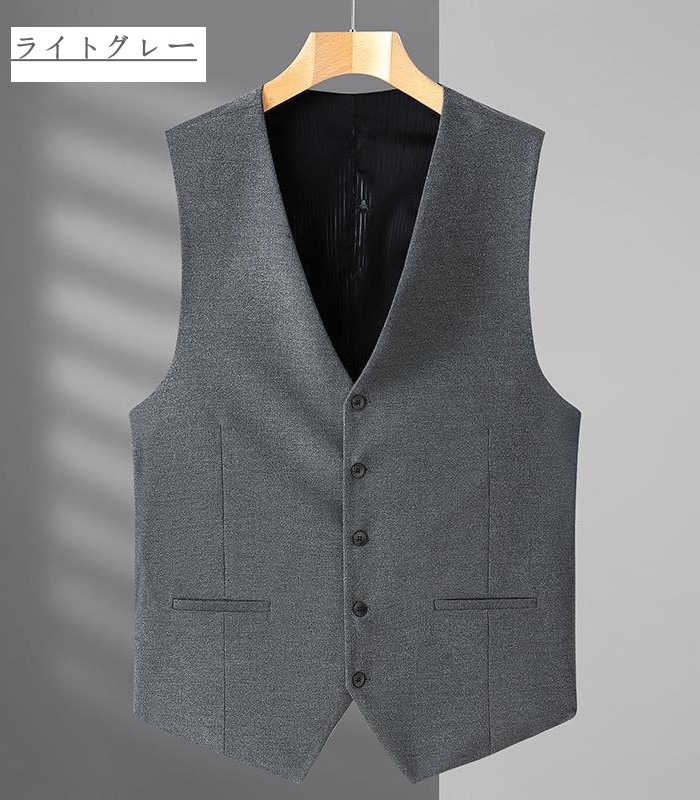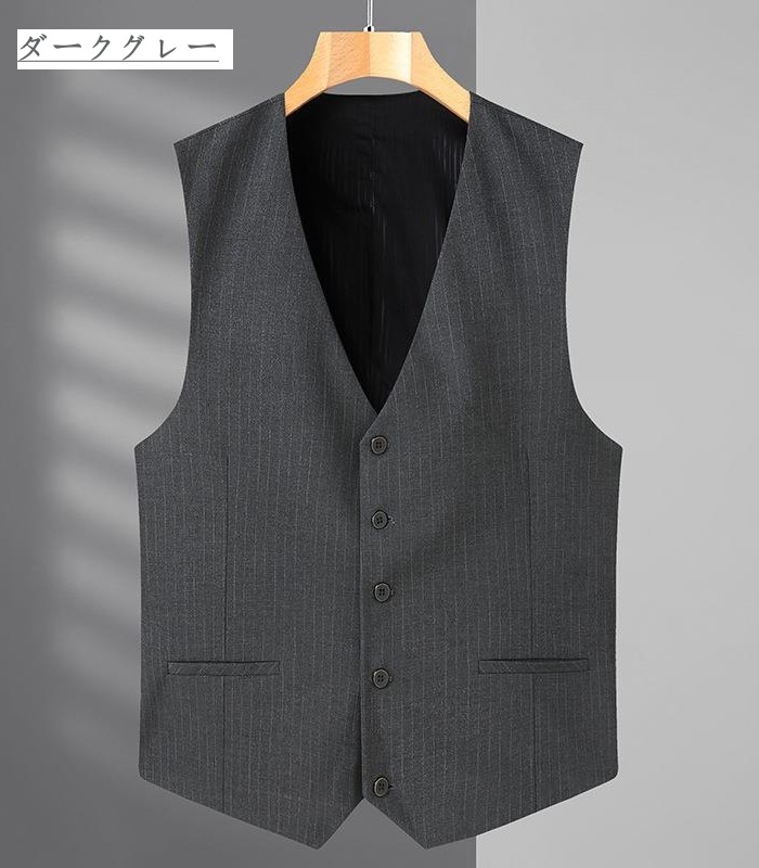ビジネスベスト 男性用 ジレー ノースリーブ ジャケット 大きいサイズ XL-7XL ストライプ柄 無地 2タイプ 3色 黒色 灰色