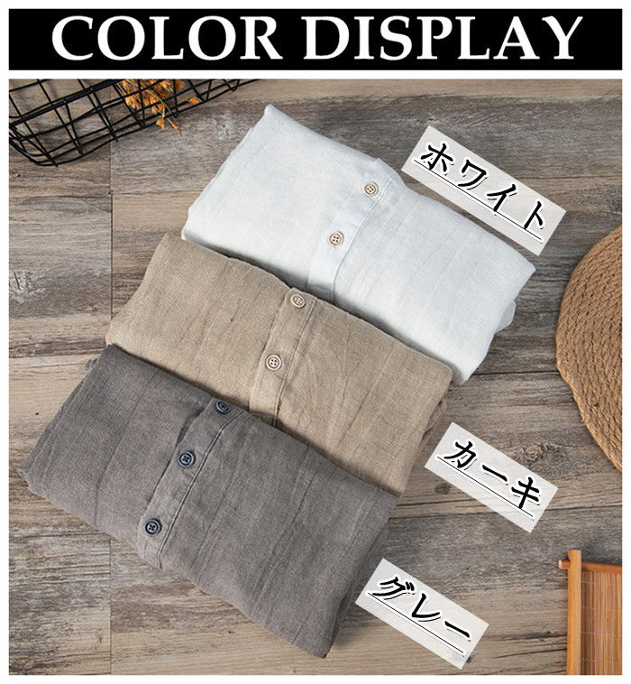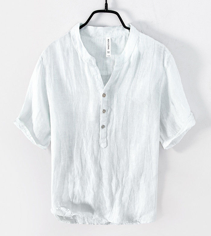 麻 ヘンリーネック 半袖Tシャツ カジ