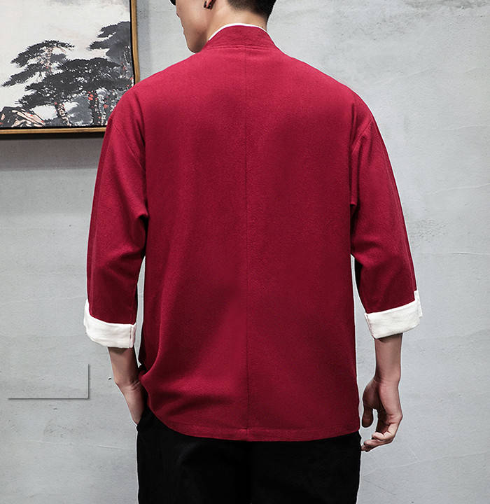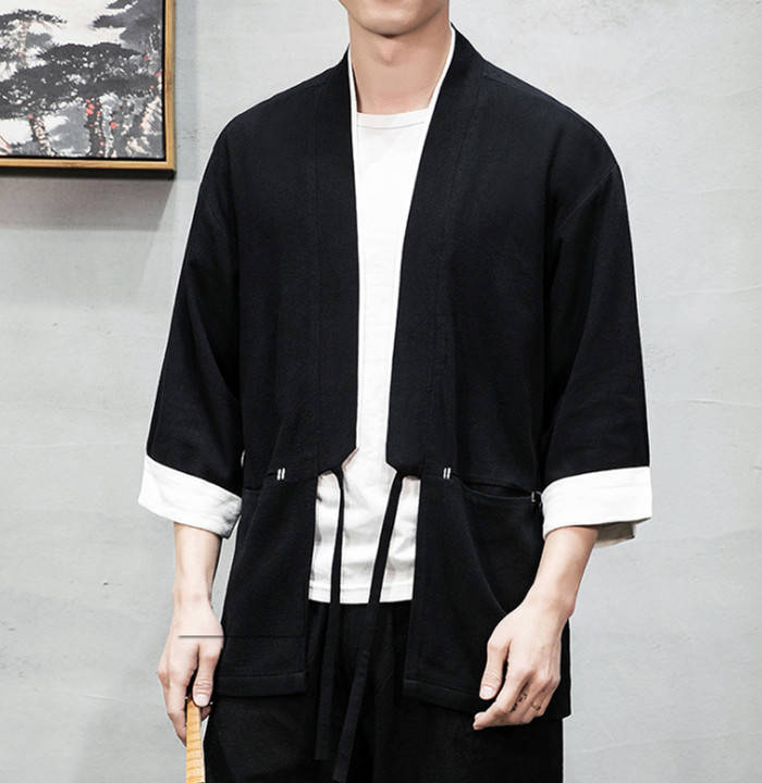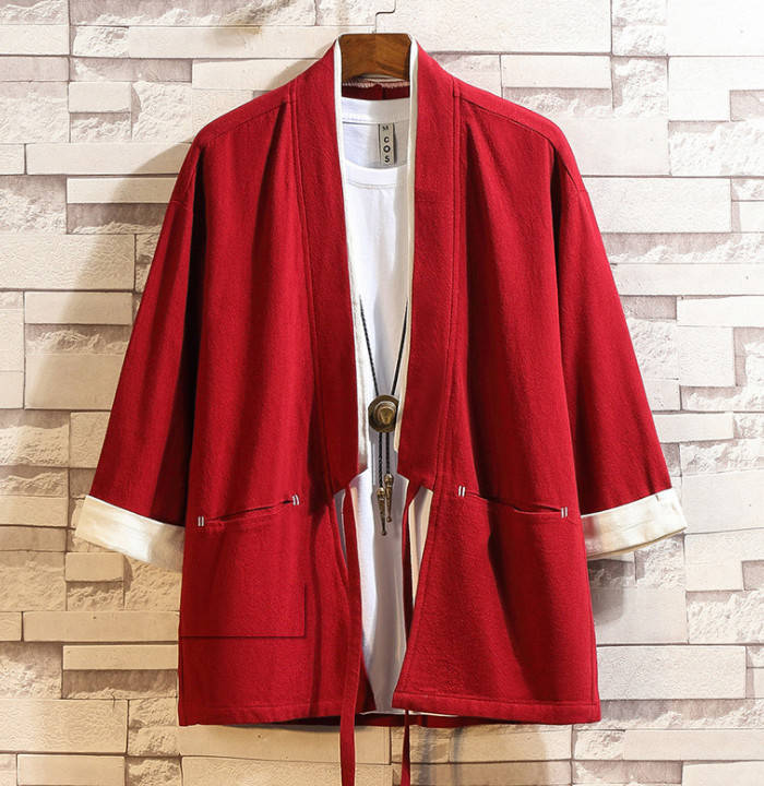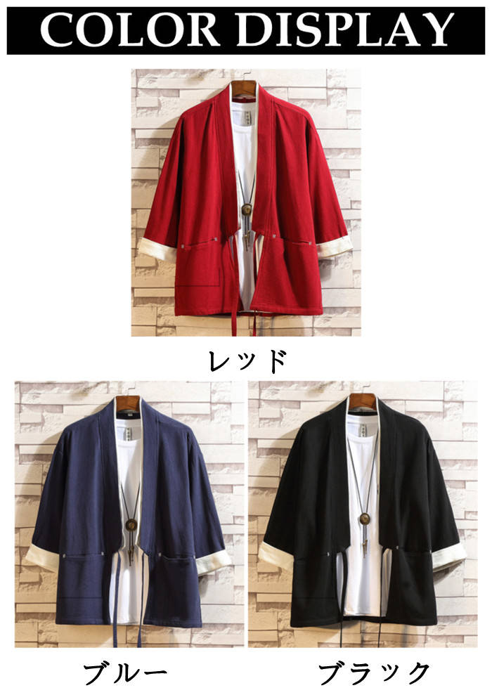 綿麻 七分袖 カーディガン 無地 和風 和服 ゆったり トップス アウター 春夏服 3colors 赤色 黒色