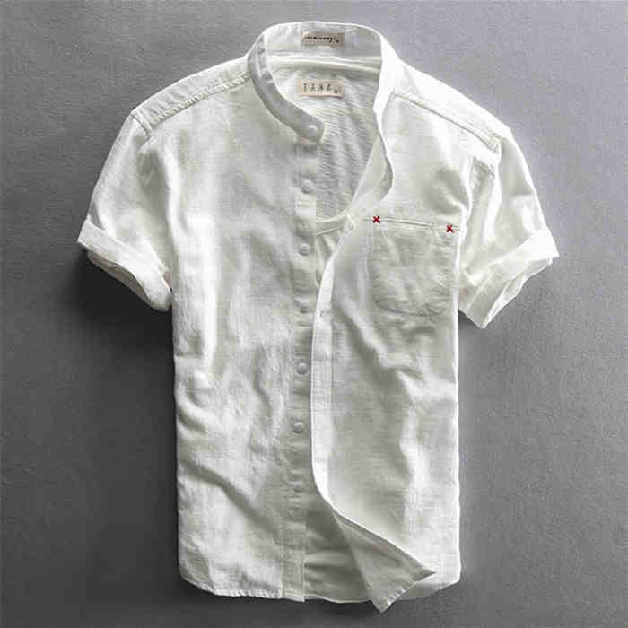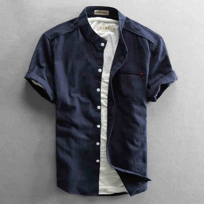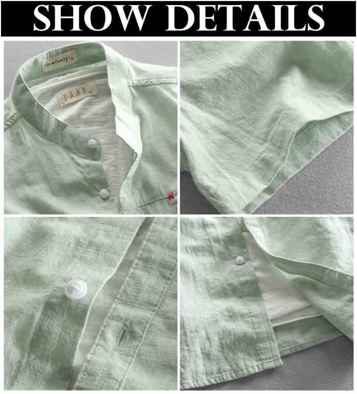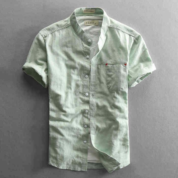 綿麻 半袖シャツ 立ち襟 カジュアル 男性用 トップス 夏物 3色メンズファッション トップス カジュアルシャツ