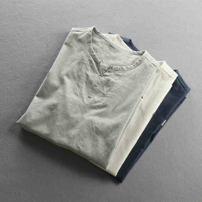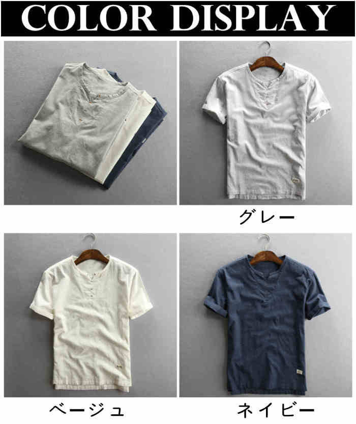 綿麻 半袖Tシャツ 丸首 カジュアル 男性用 トップス 夏物 3色メンズファッション トップス Tシャツ カットソー