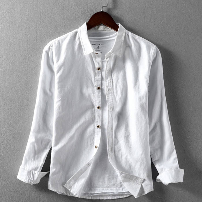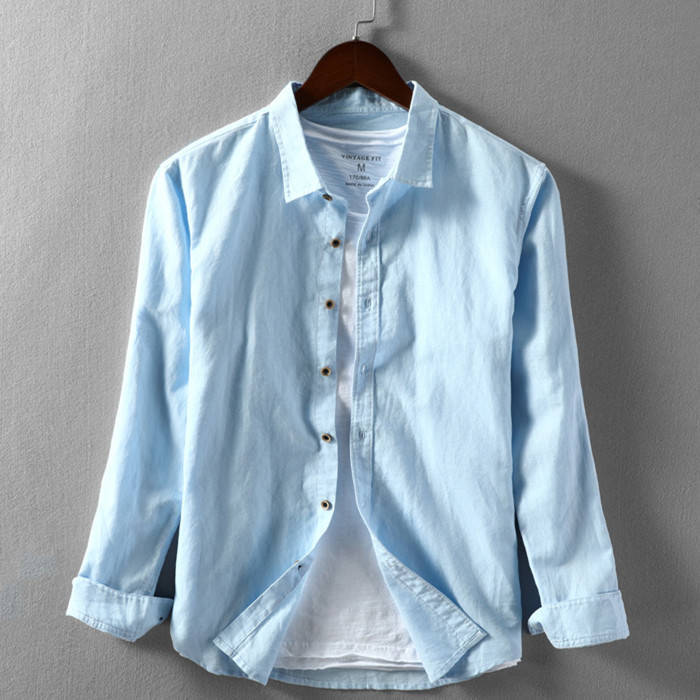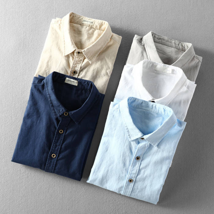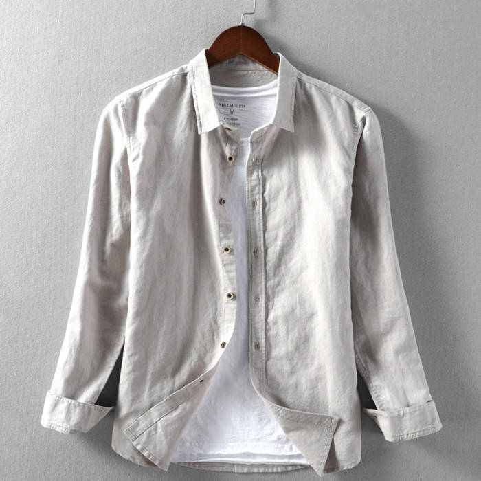 綿麻 ビジネス Yシャツ 長袖シャツ