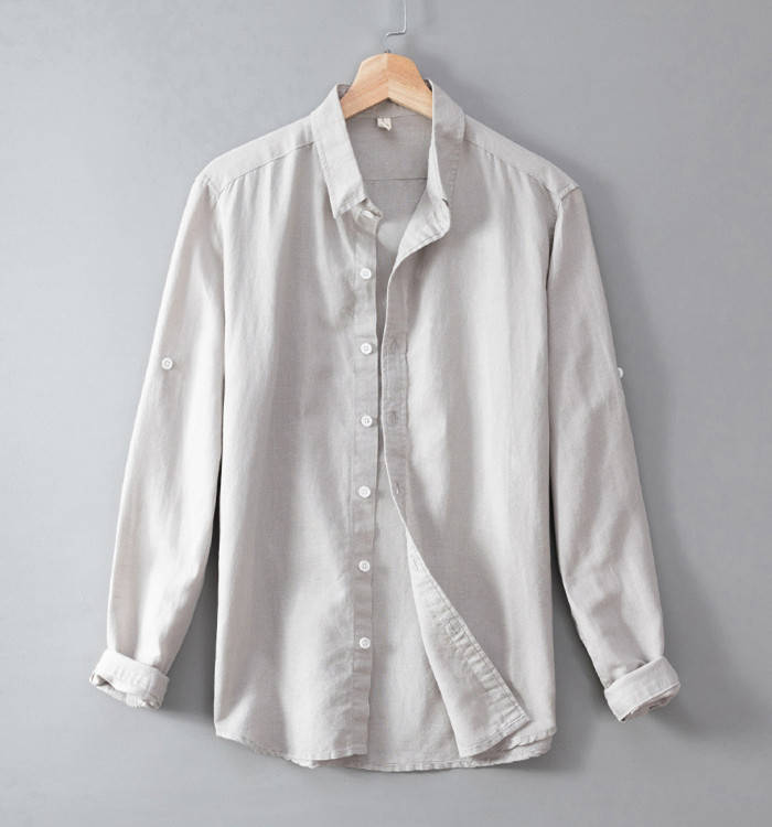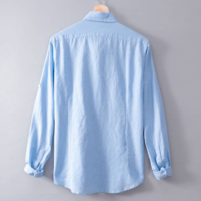 綿麻 ビジネス Yシャツ 長袖シャツ