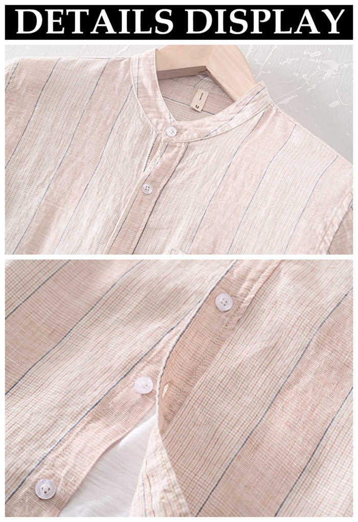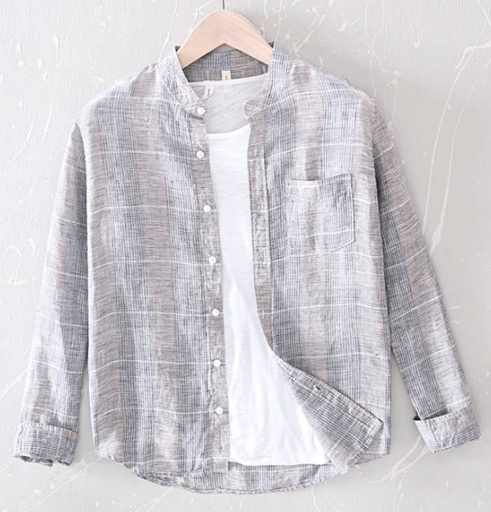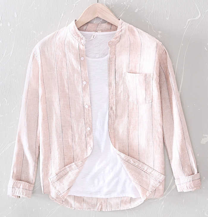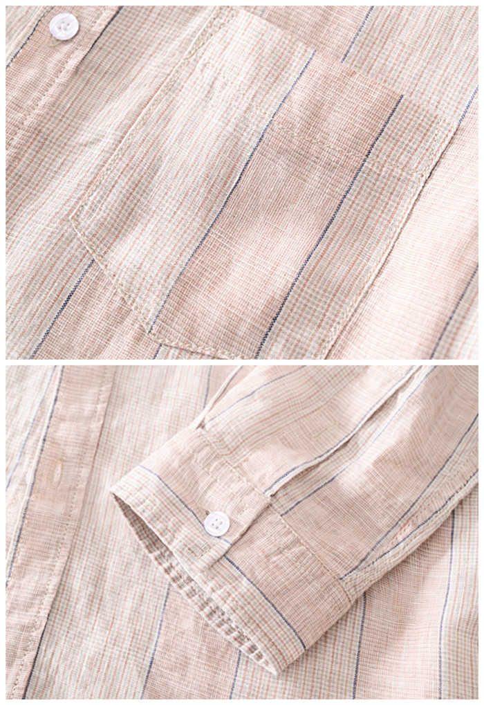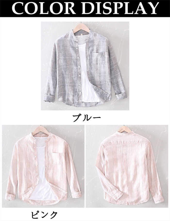 綿麻 ストライプ柄 長袖シャツ カジュ