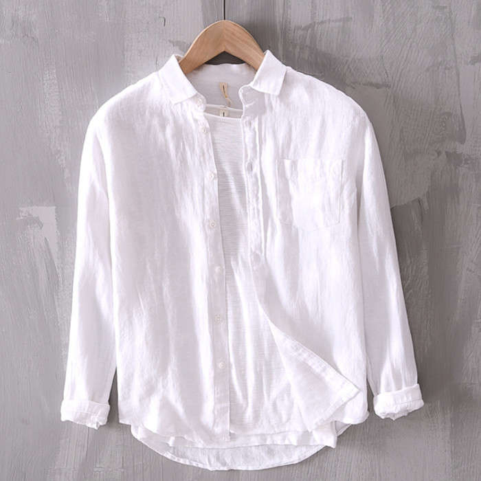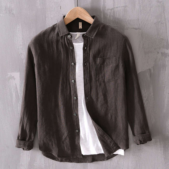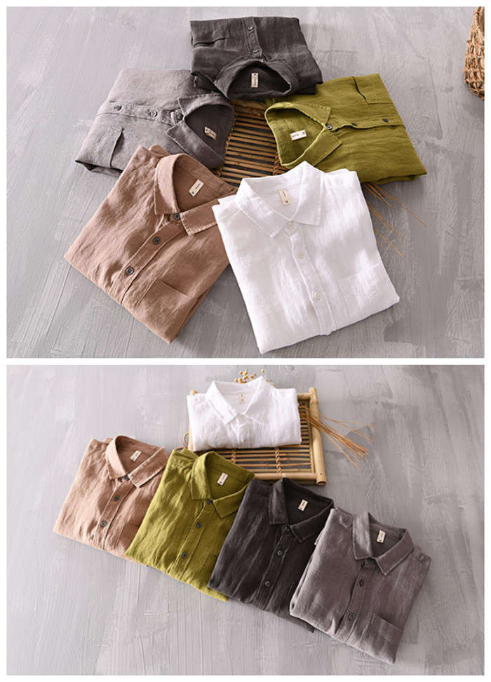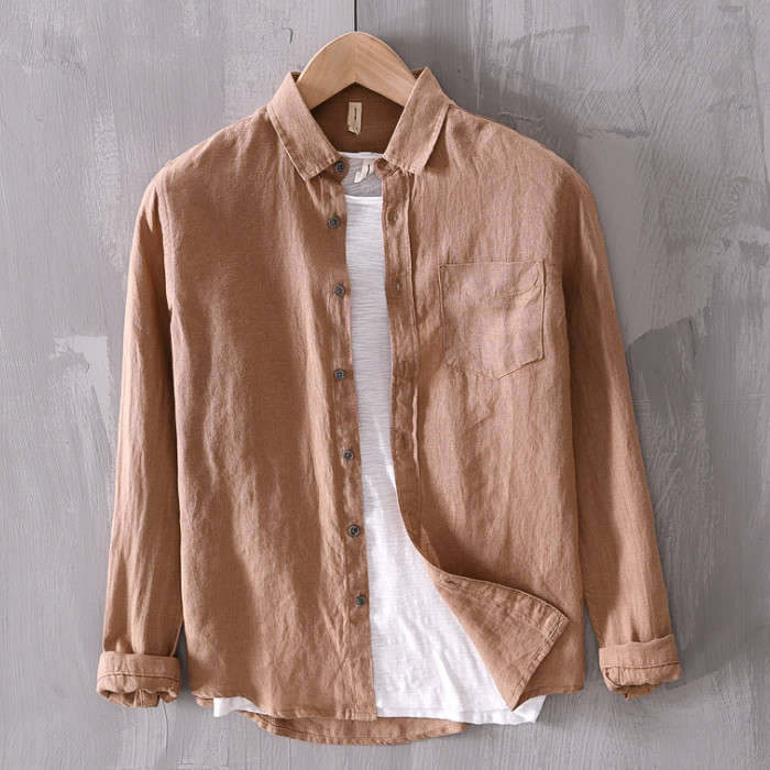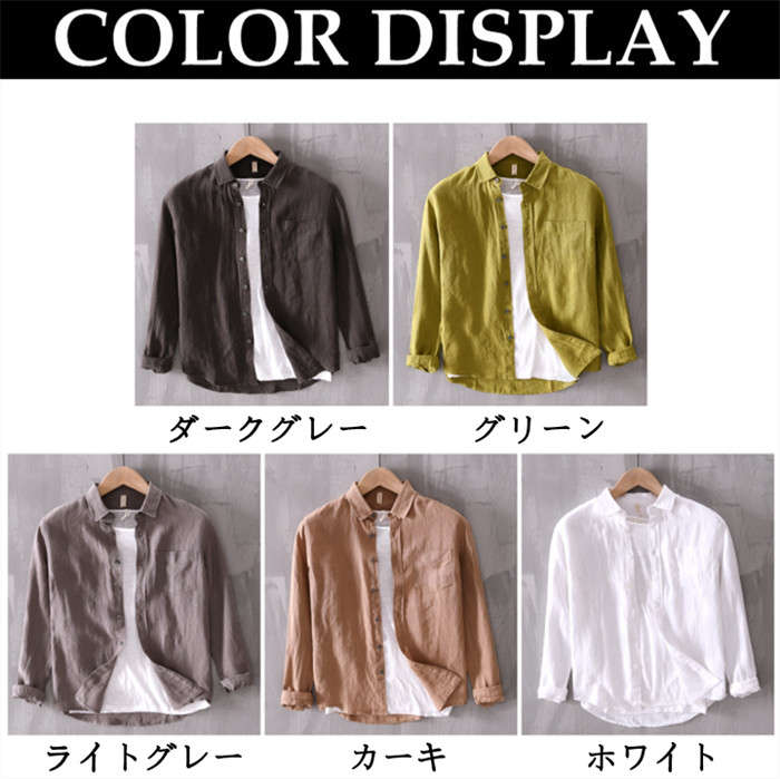 綿麻 無地 長袖シャツ カジュアル 男性用 トップス 春夏秋服 5色 緑色 灰色 白色メンズファッション トップス カジュアルシャツ