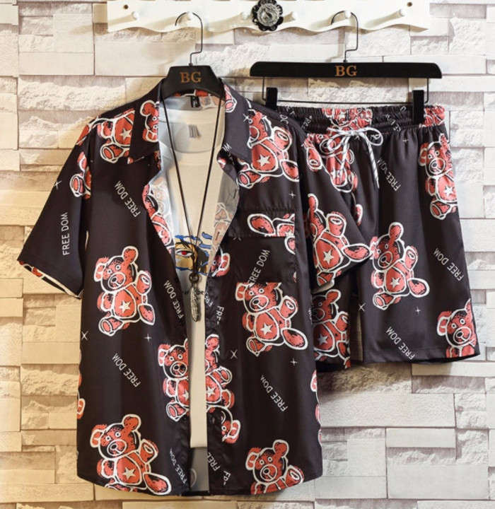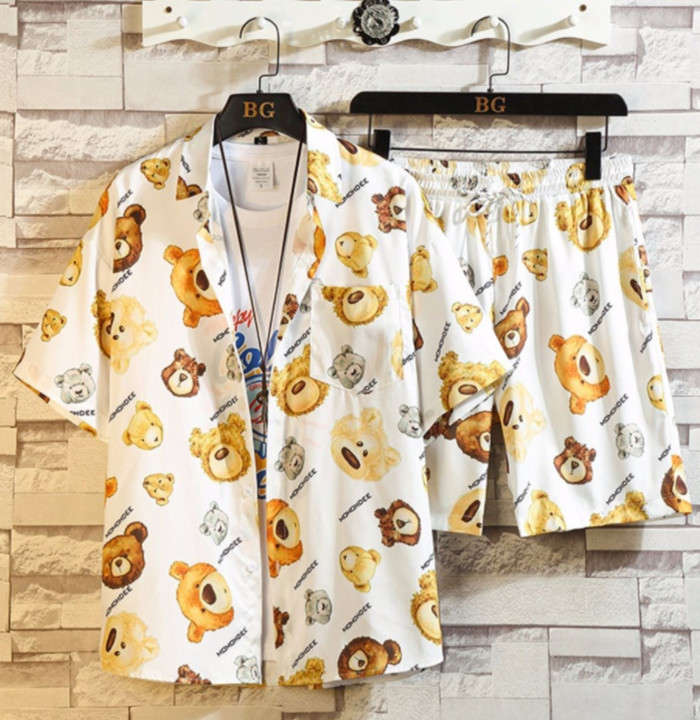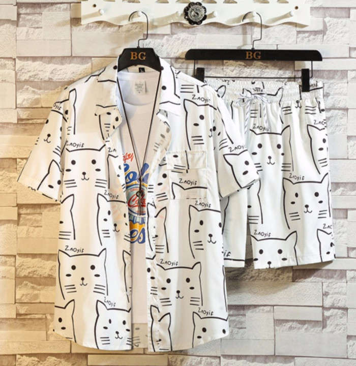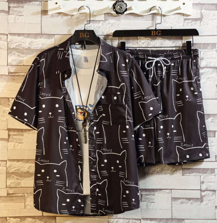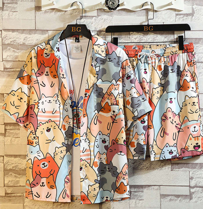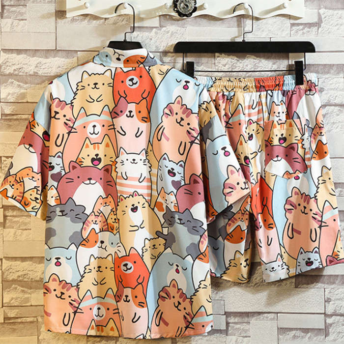 セットアップ 猫柄 総柄 アロハシャツ