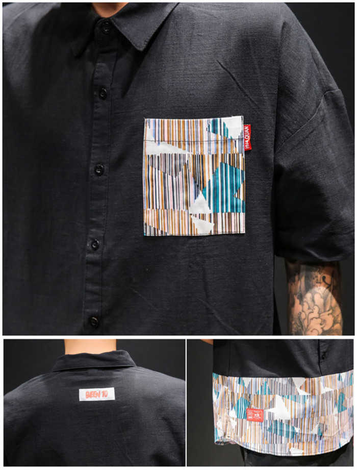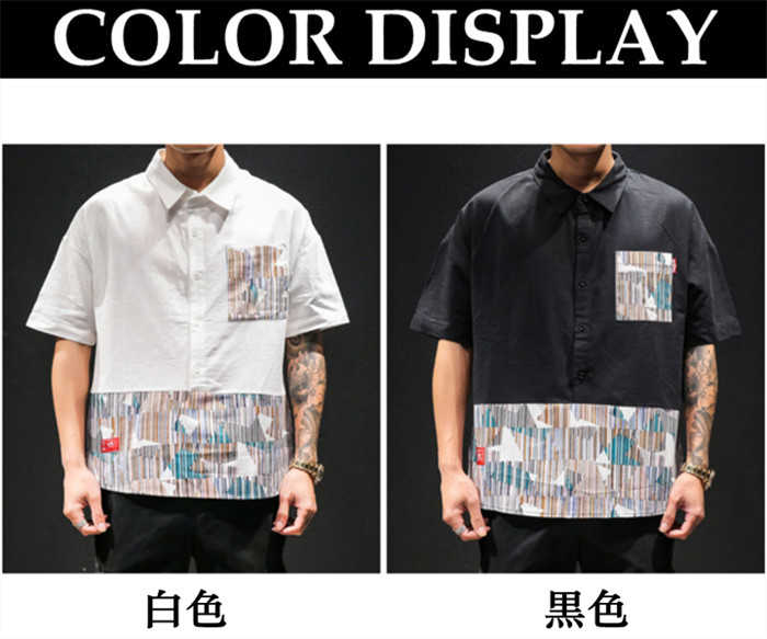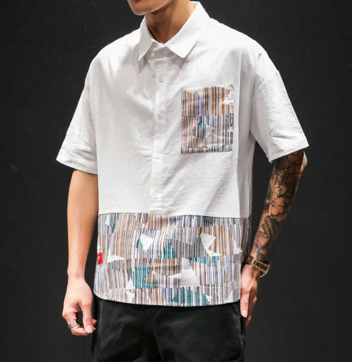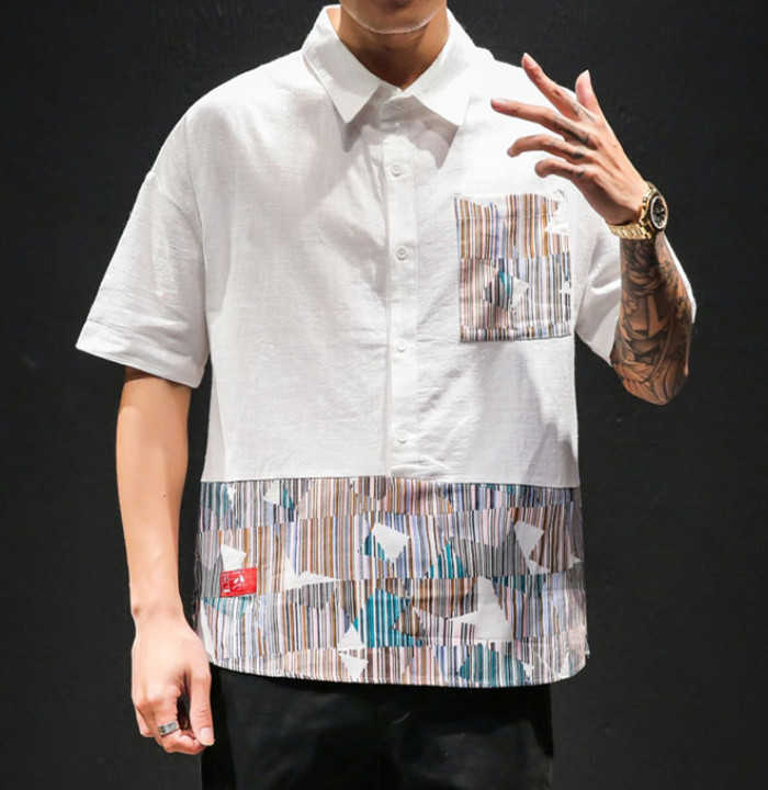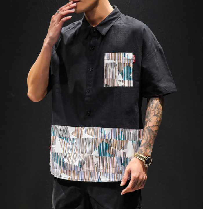半袖 プルオーバーシャツ 切り替え柄