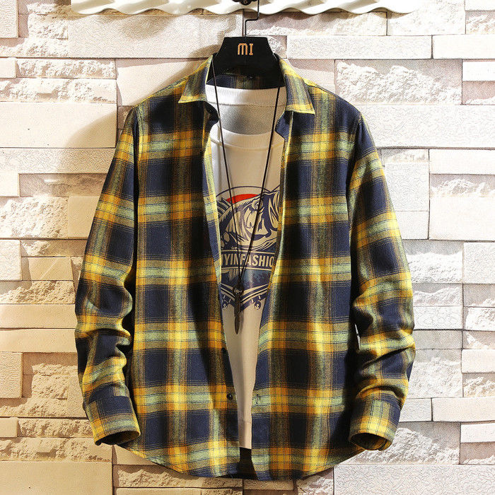 長袖 チェック柄 カジュアルシャツ 男