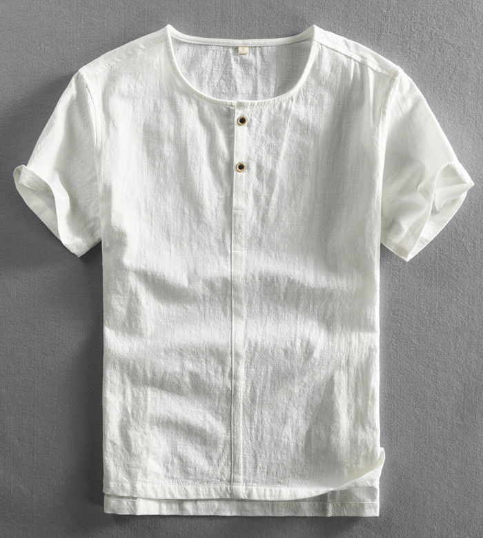 綿麻 ヘンリーネック 半袖Tシャツ カ