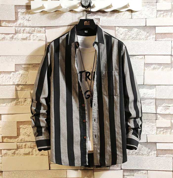 長袖 ストライプ柄 カーディガン 男性用 トップス 3色 黒色 赤色 緑色メンズファッション トップス カジュアルシャツ