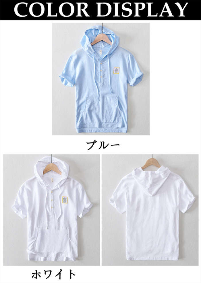 綿麻 半袖Tシャツ カジュアル パーカ